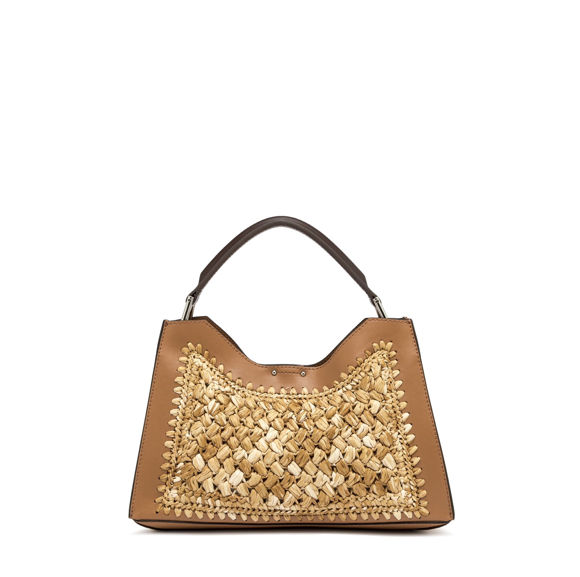 From the Aurora collection by Gianni Chiarini Firenze, this bag is characterized by a trapeze shape, it is made of hand-woven raffia and enriched with metal details. A symbol of contemporary elegance, it comes with a practical adjustable and removable leather shoulder strap. Top magnetic clasp closure.