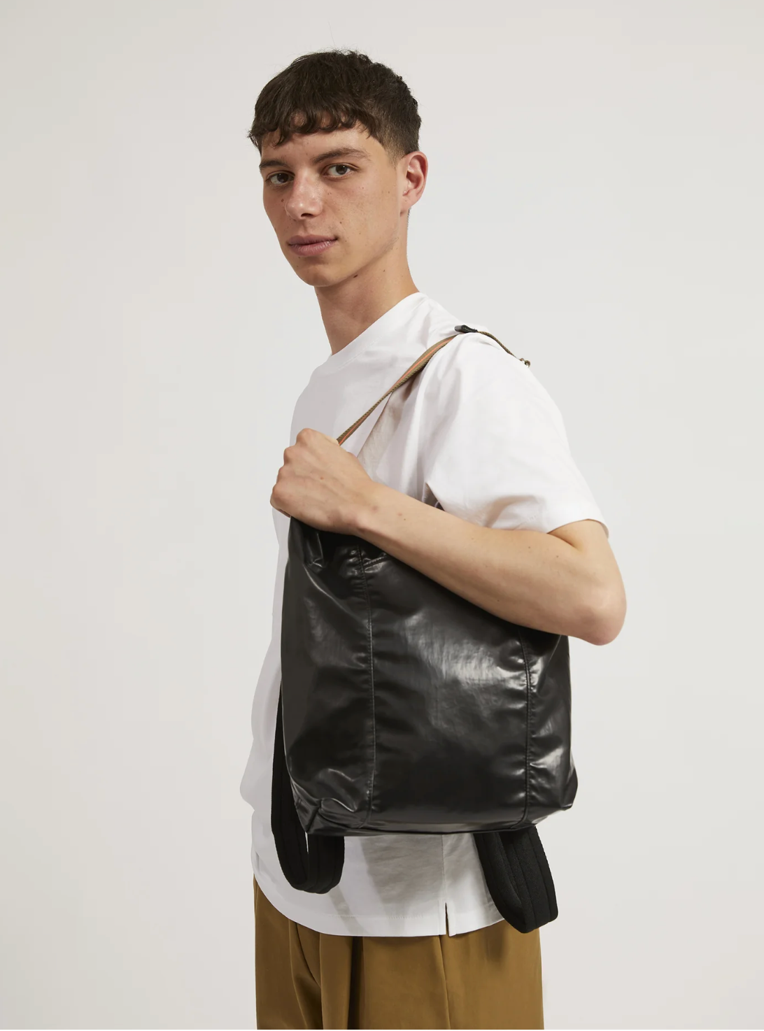 - contrast strap adjusts to allow for wear over the shoulder like a tote bag