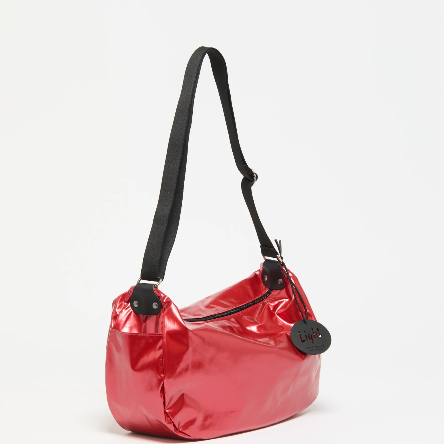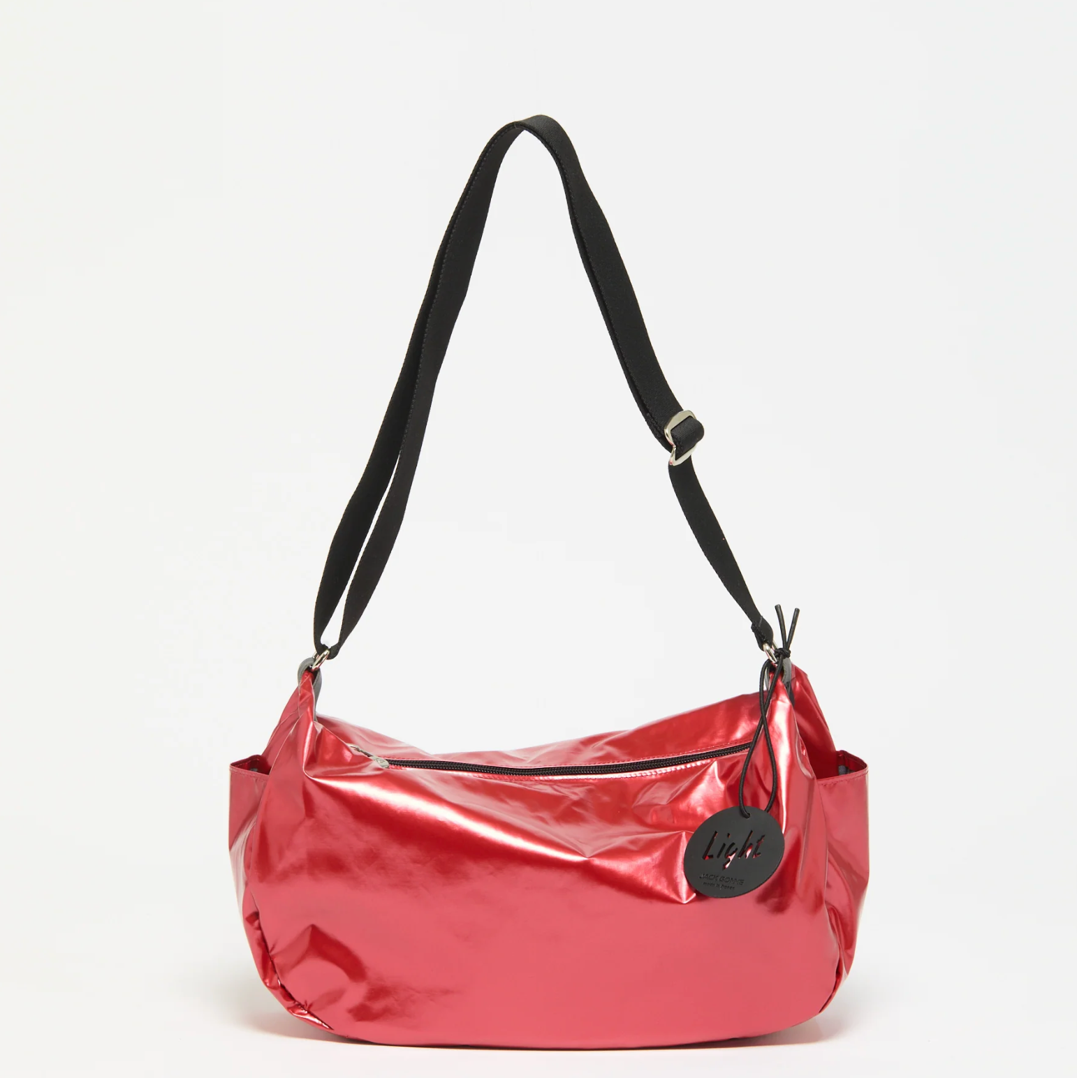 A truly useful shape for handsfree life. Can be carried on the shoulder or made crossbody with the slide of the buckle. The shape transforms depending on how much is put inside which makes this one of Jack Gomme's most enduring silhouettes in its popular Light line. A great size for your carrying your daily essentials and then that unexpected extra scarf or book.