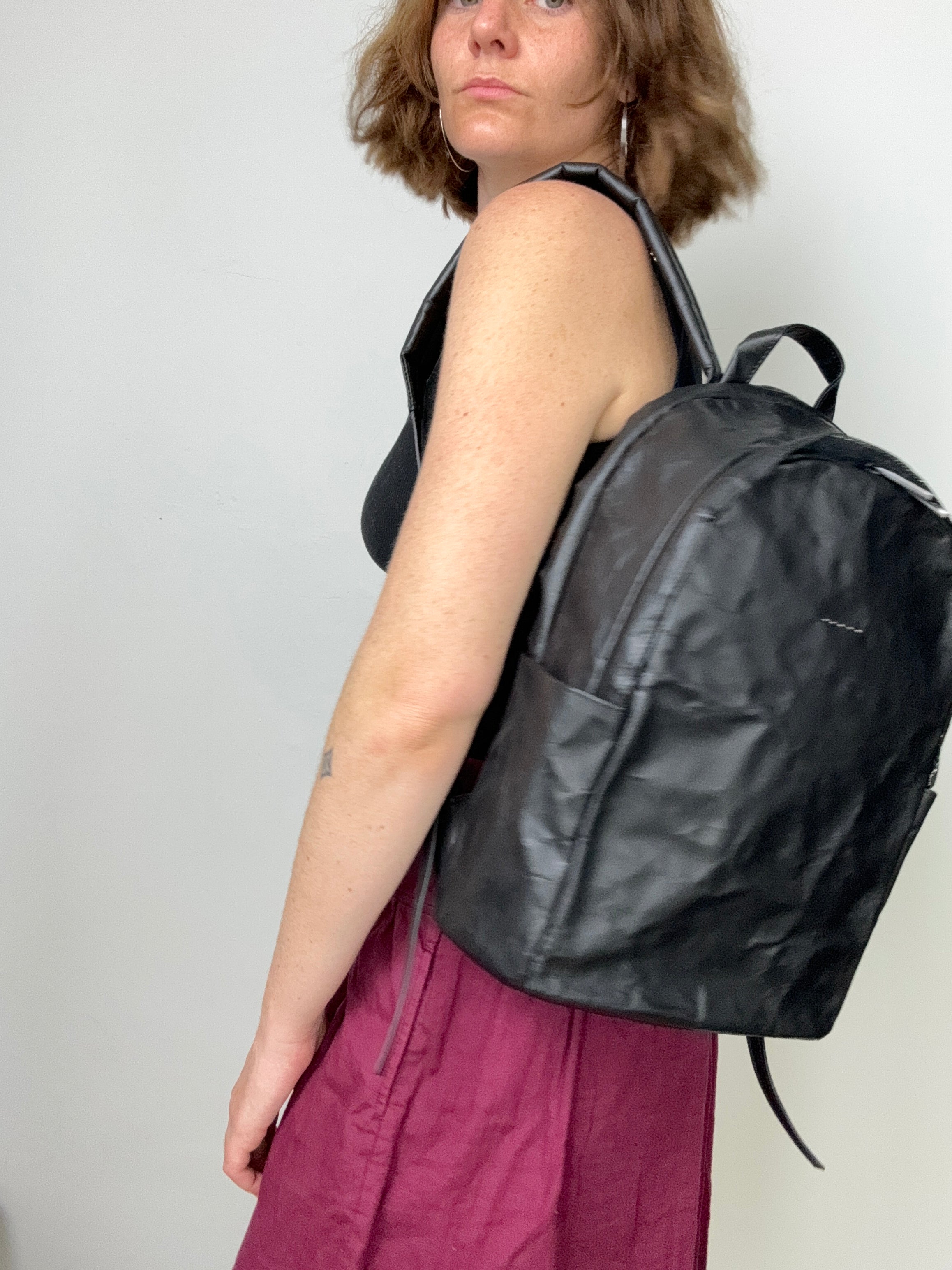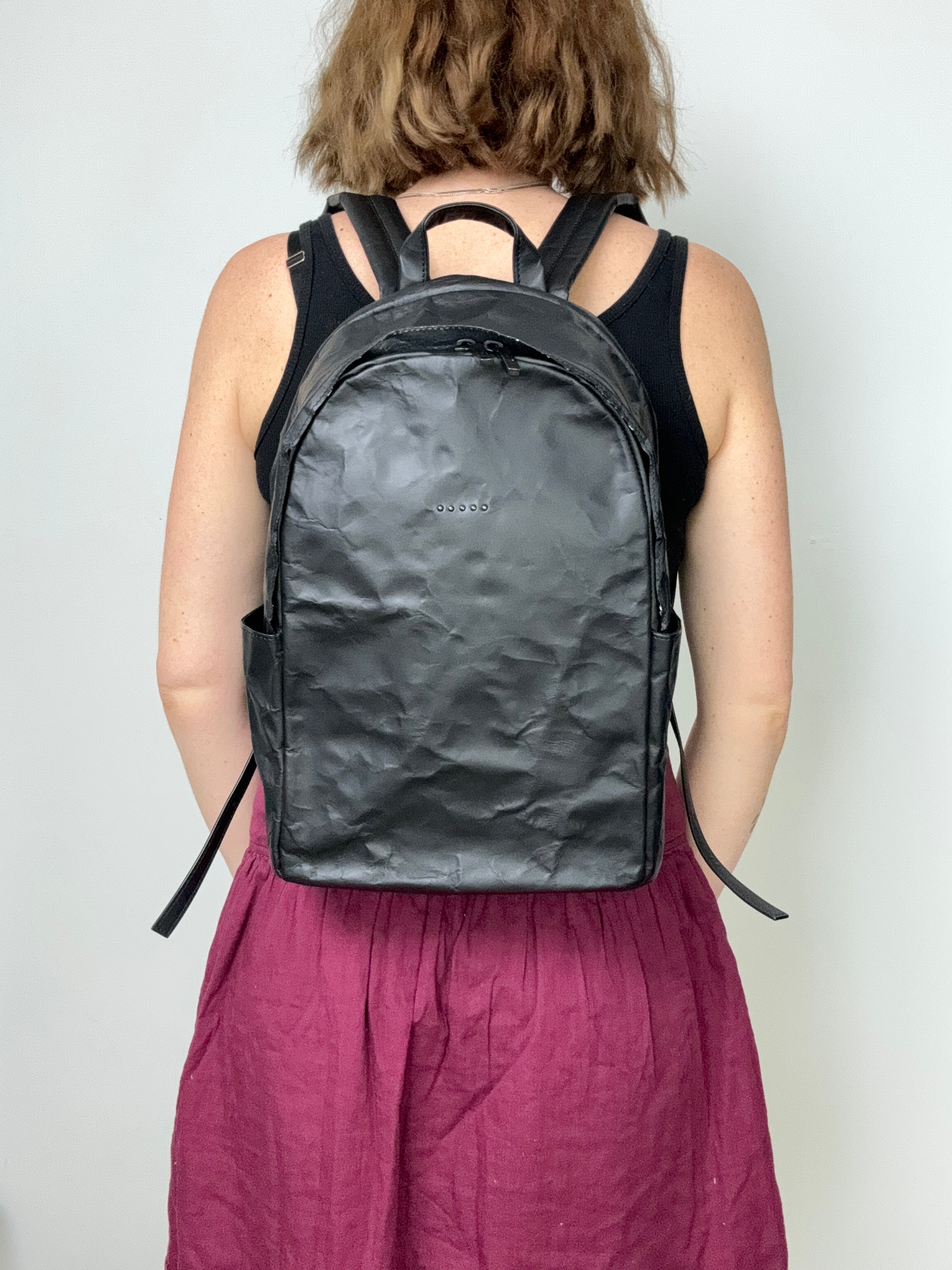 The material used is ``crinkle leather,'' an original material made of Japanese cowhide leather that has been thinned to 0.4 mm and aluminum foil crimped onto it.