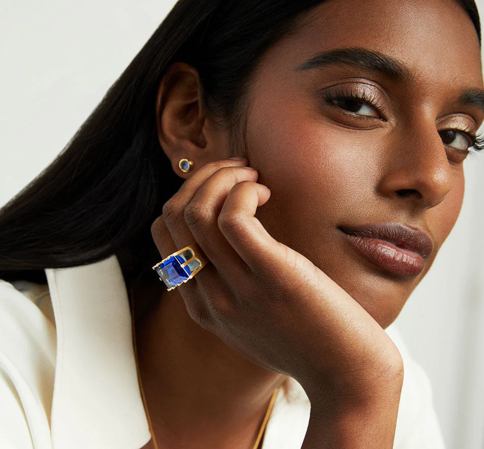 The Castle Ring features a statement-making, baguette-cut gemstone in a setting reminiscent of the parapets found on the rooftops of castles. Inspired by the designer's Scottish heritage, this unique, multi-prong setting lifts the gemstone above the band- allowing light permeate and giving a bright, ethereal glow to each stone.