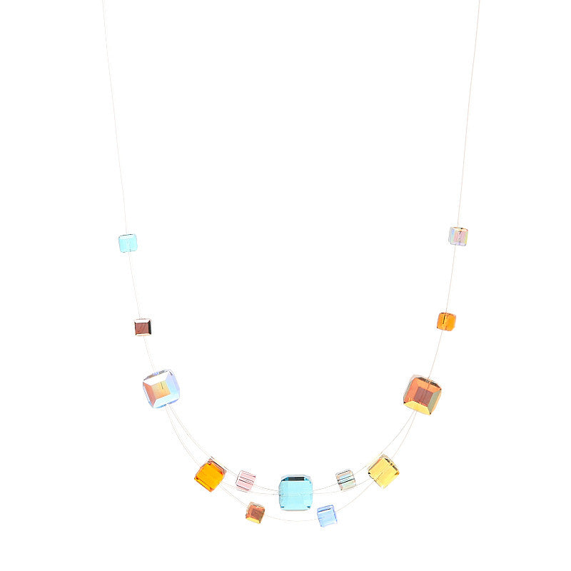 Necklace composed of crystal cubes. These are assembled on 2 rows of nylon thread.