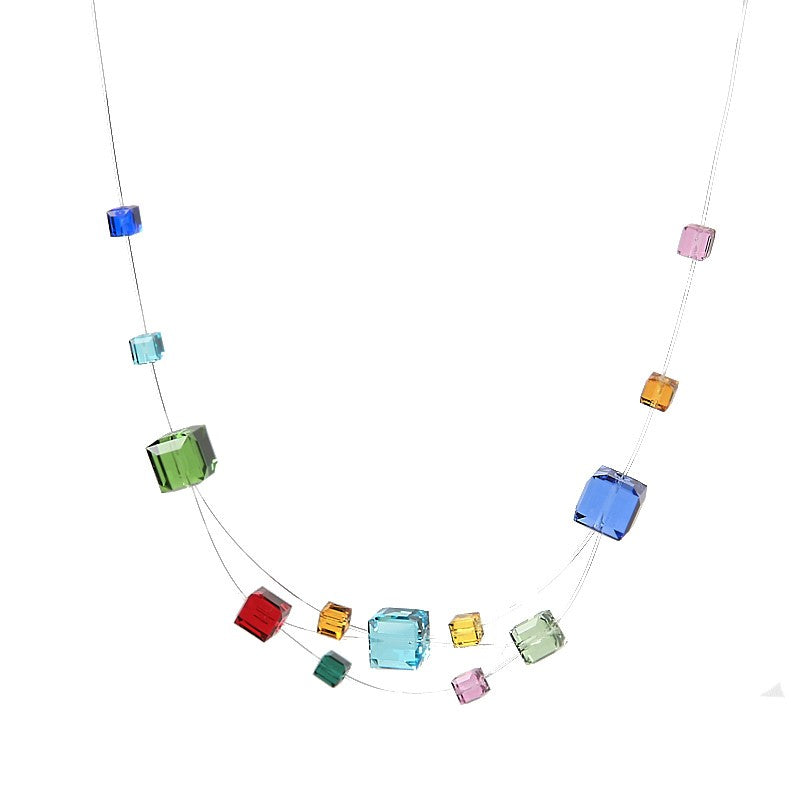 Necklace composed of crystal cubes. These are assembled on 2 rows of nylon thread.