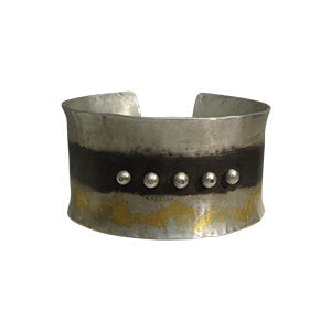Tiny diamonds set in Fine Silver adjustable bracelet, partially oxidized fused with 24k gold leaf.
