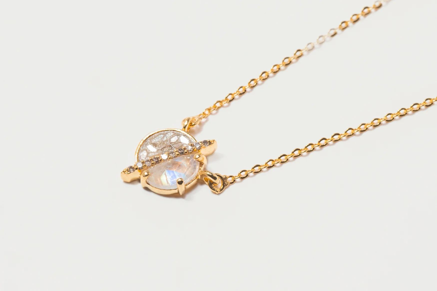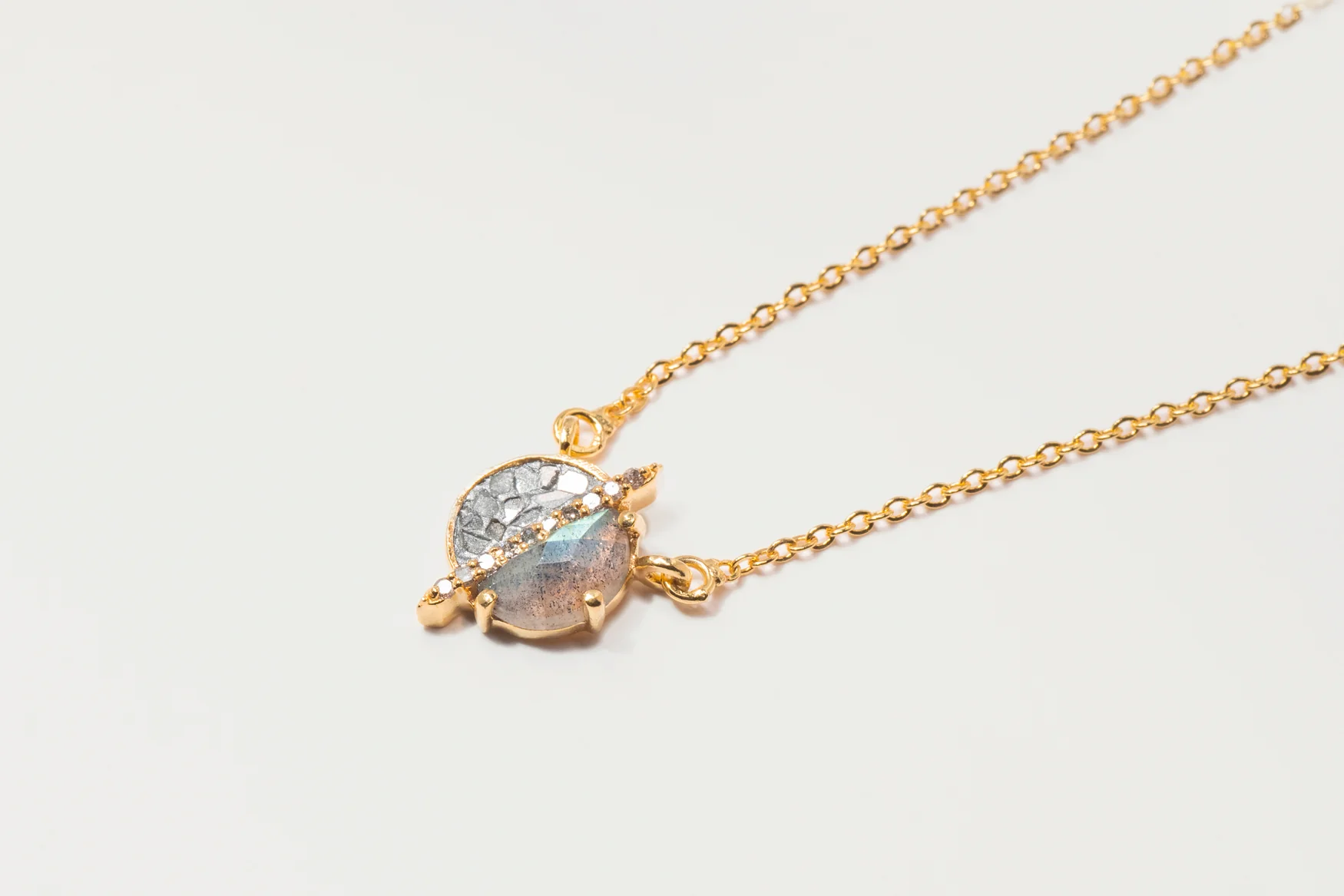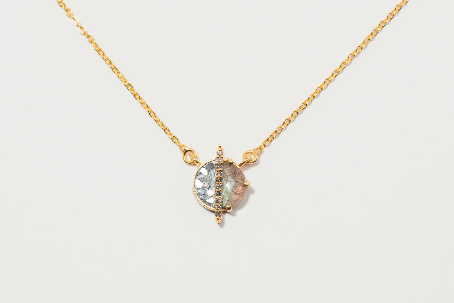 Elson Mini Pendant Necklace in Labradorite and Silver Resin