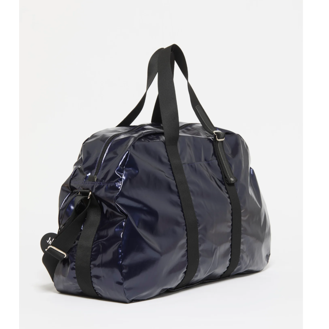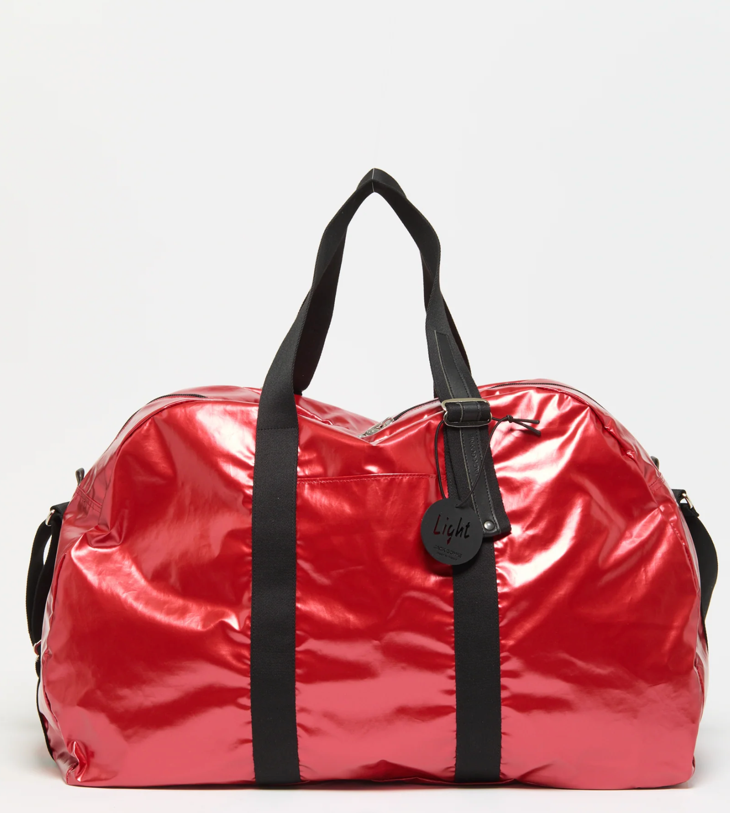 This incredibly light, extra large weekend bag folds completely flat for storage or is a convenient carry-on luggage piece. Zipper closure, attached shoulder strap