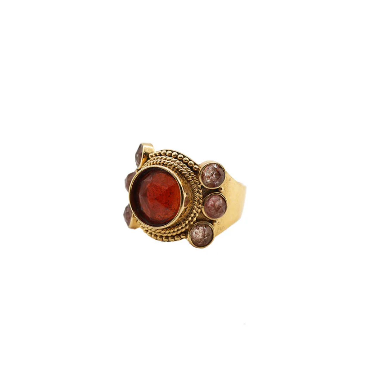 Ring in 3 micron gold plated brass and semi-precious stones.
