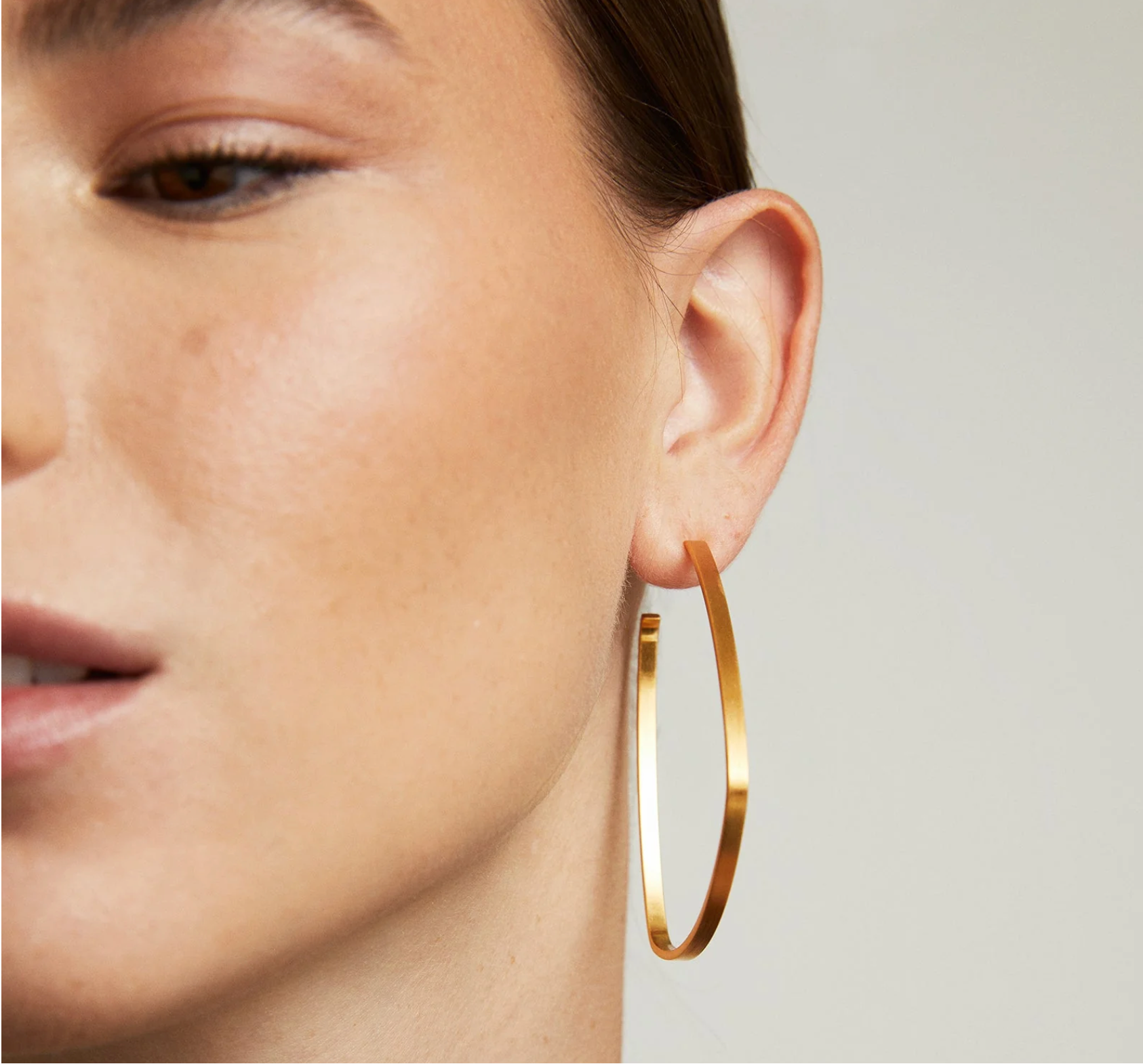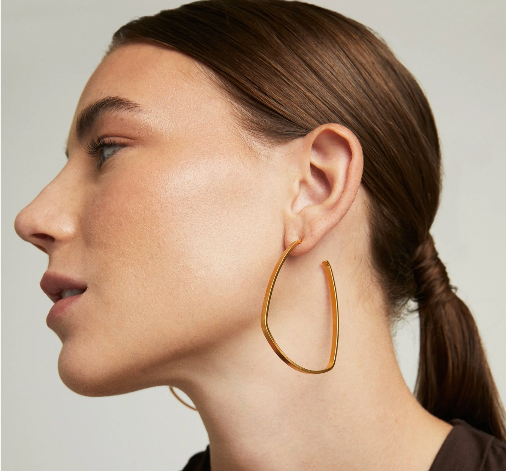 Leaving traditional design behind, this modern architecturally-inspired square-shaped hoop hangs from a post back. The slim, lightweight structure makes wearing this style as effortless as it is unique.