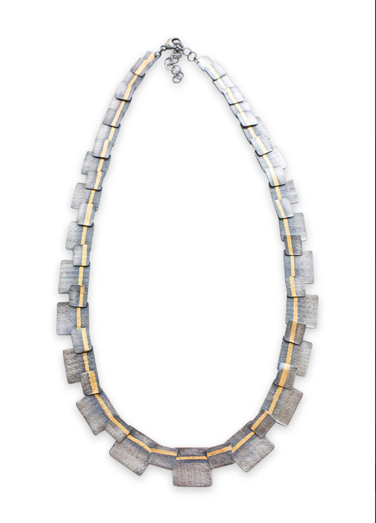 Lightweight textured layers of fine silver with 24k gold that’s been fused into the silver using a technique call keum boo.