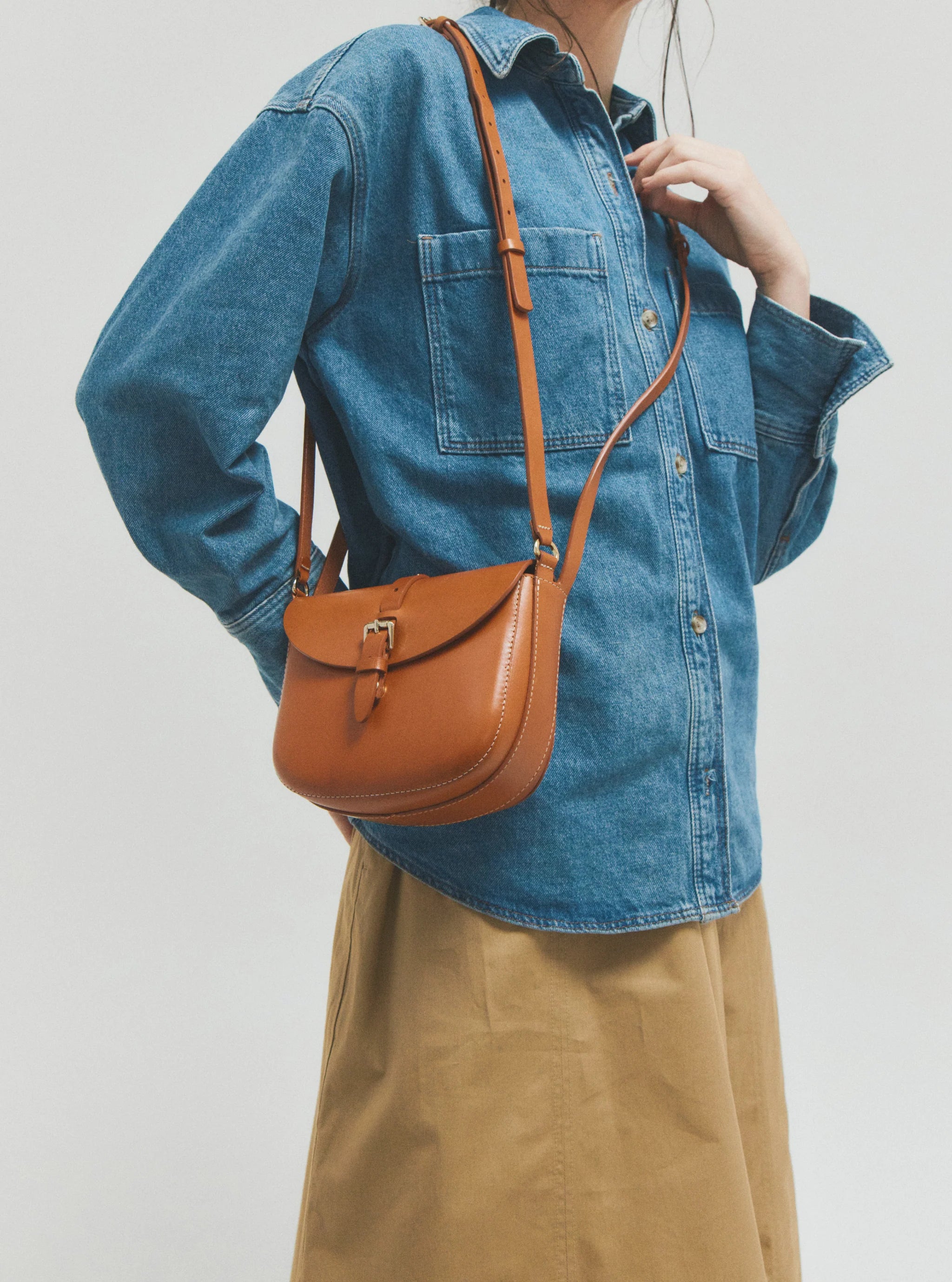 - Flap with magnetic snap button and decorative buckle