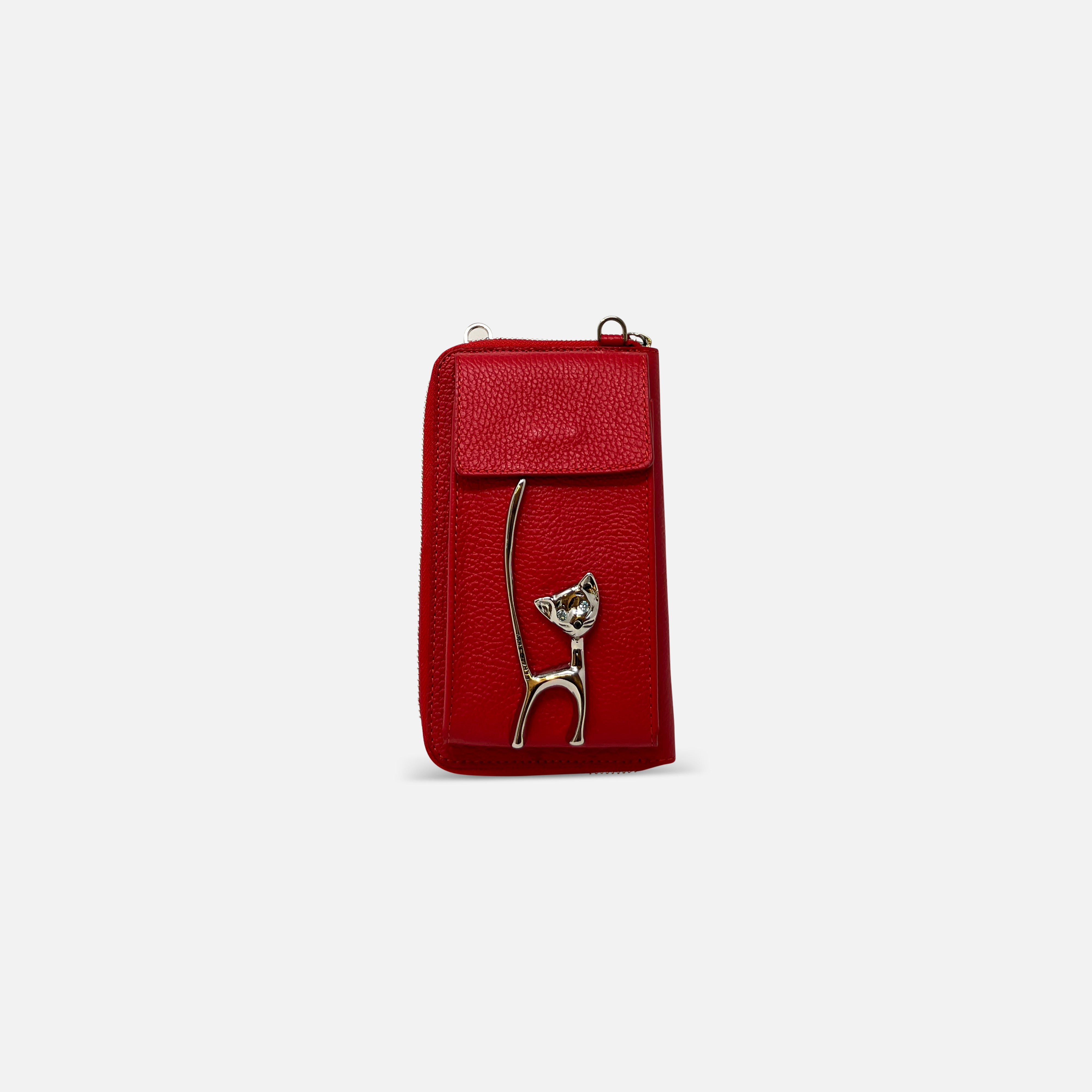 Renato Angi Leather Crossbody Wallet Bag with Silver Cat