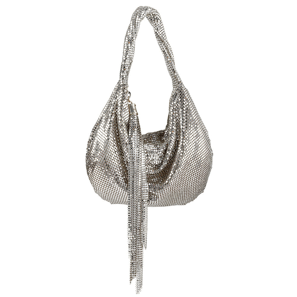 The Marisol Twisted Hobo is the classic grab and go for a girls night out. With it’s cascading mesh tassel, and shiny flat mesh exterior, you will be the life of the party. The thoughtfully spacious interior will hold all of your night out essentials. Cheers to a fun night!