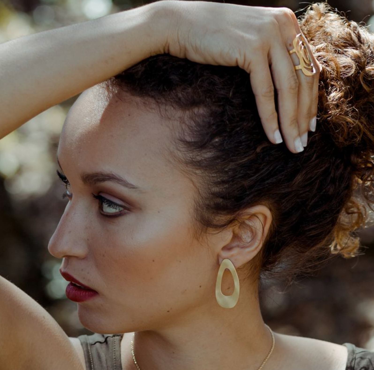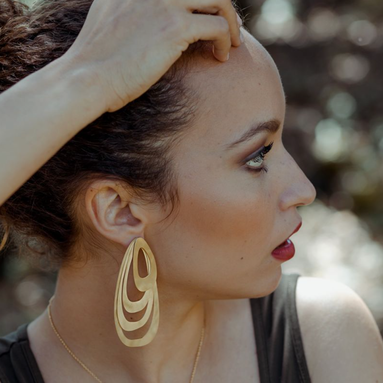 You will love the design of the Menhir earrings. To create them, we based ourselves on primitive art sculptures of the same name, and we captured them in this wonderful piece that will allow you to highlight your best attributes. These figures designed in our jewelry workshop will allow you to display your most decisive style thanks to the artisanal finish characteristic our brushed brass. These earrings can be Asymmetric, right side has one hoop, the left side has 3 extra modular hoops that can be removed or added for 12 different possible looks.