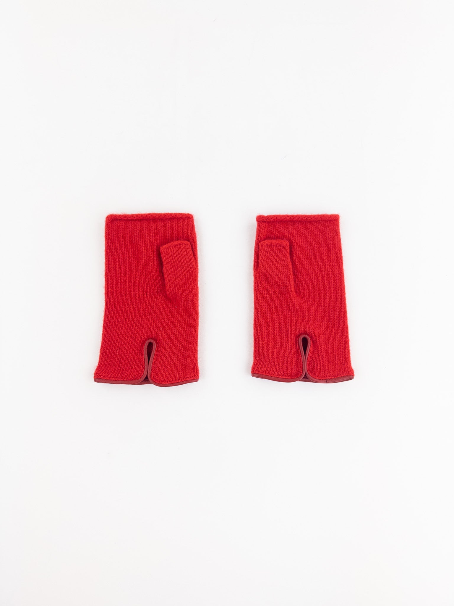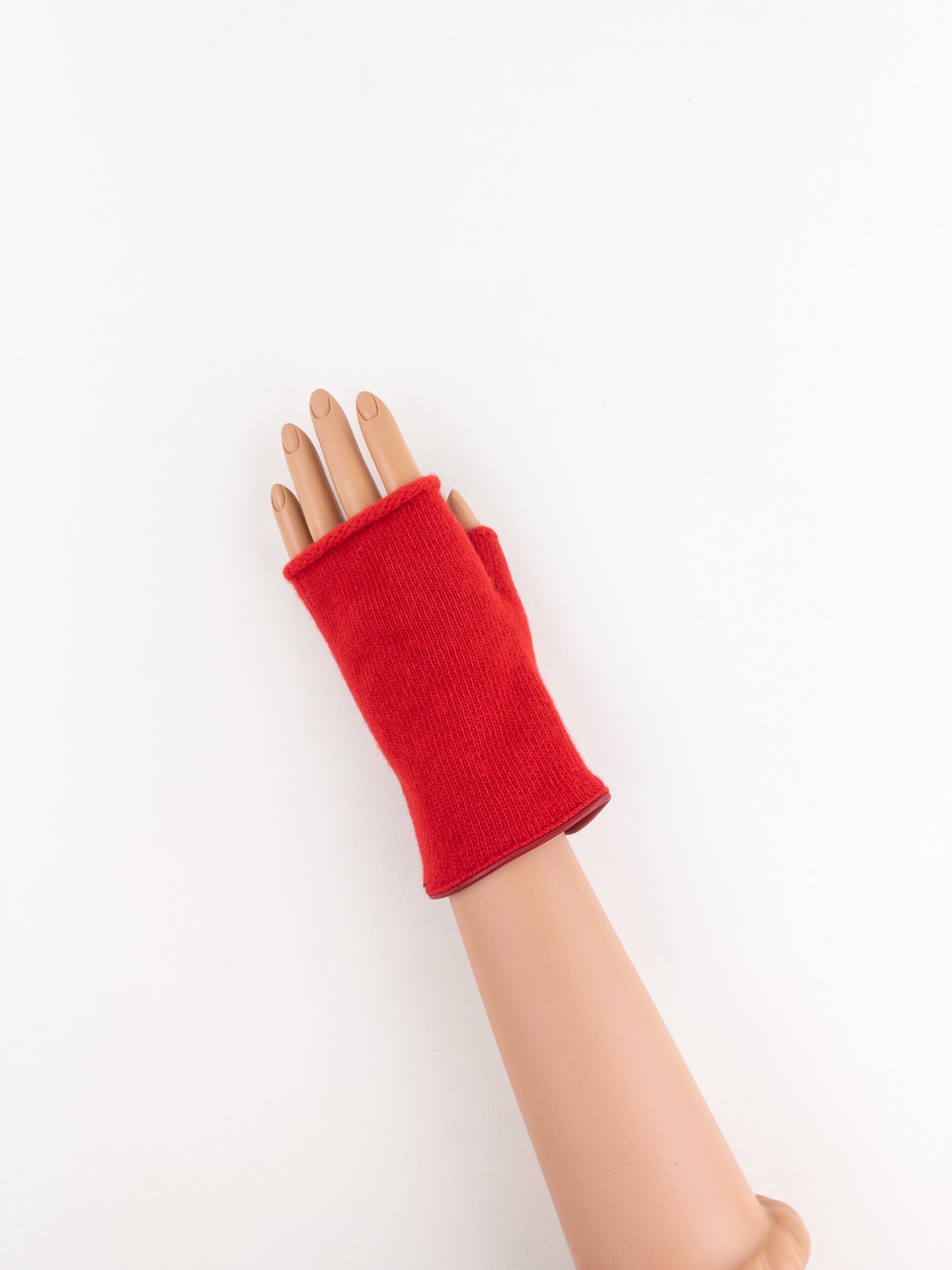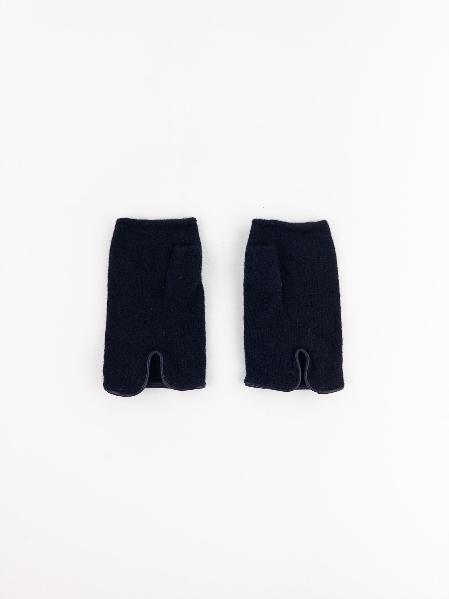 Practical merino and cashmere knitted fingerless glove. Leather ribbon. Ideal for a drink on a terrace.