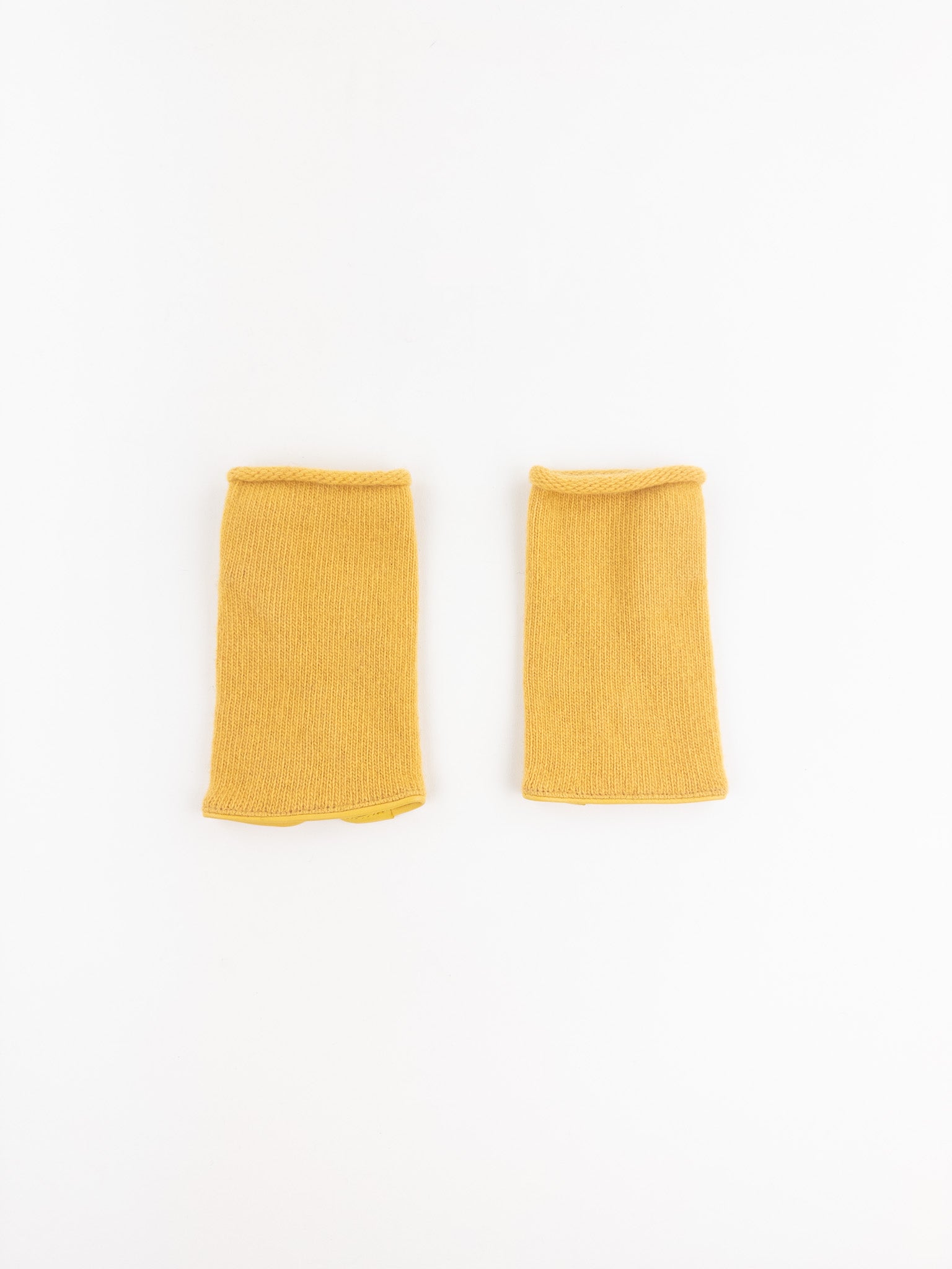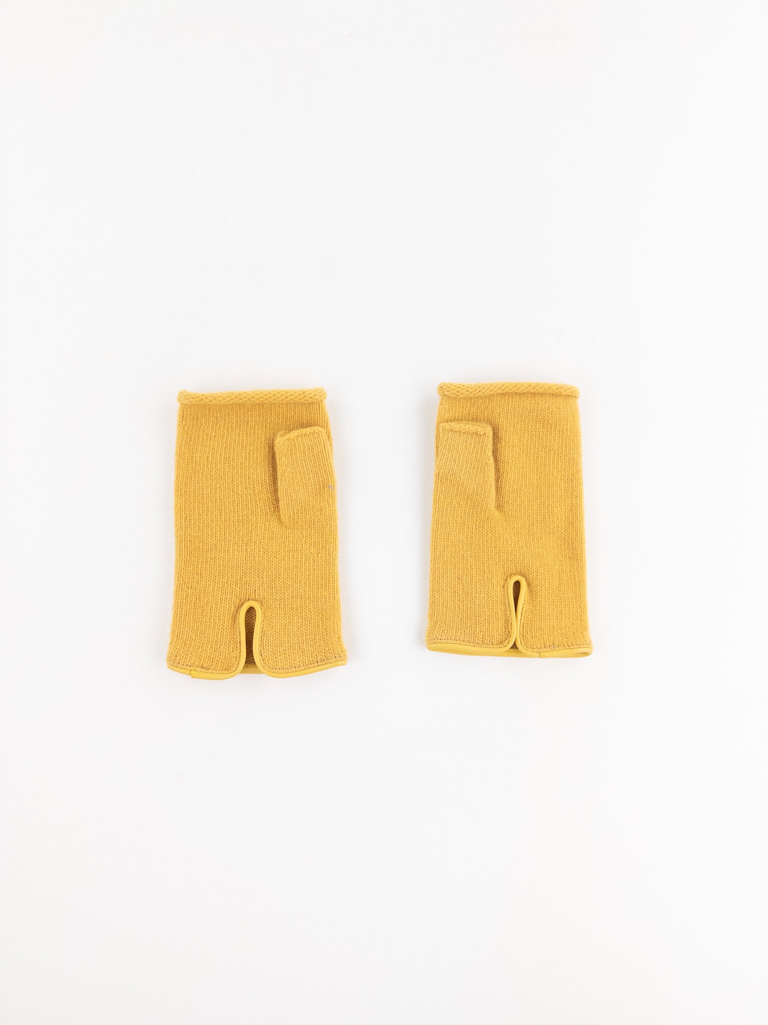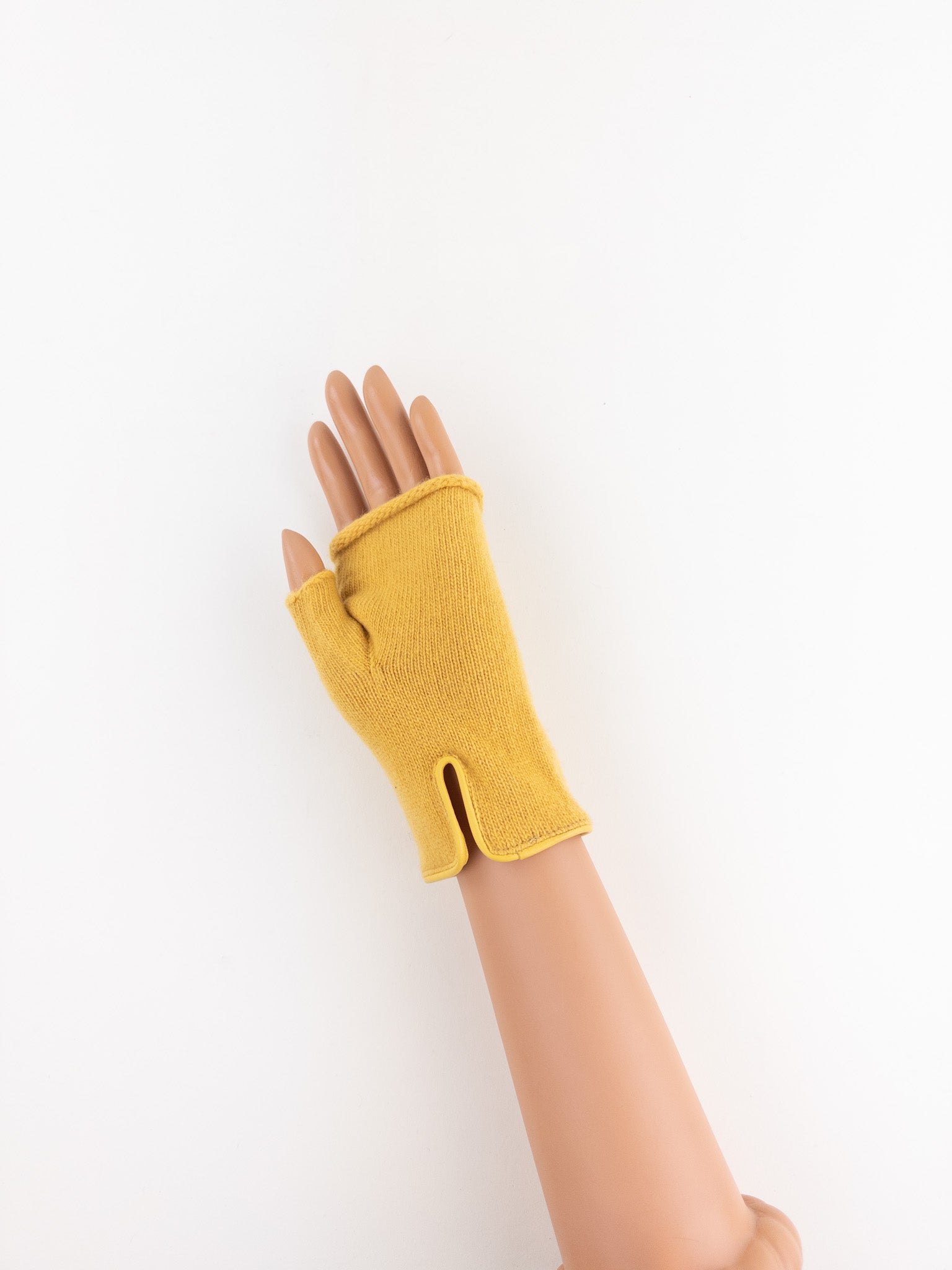 Practical merino and cashmere knitted fingerless glove. Leather ribbon. Ideal for a drink on a terrace.