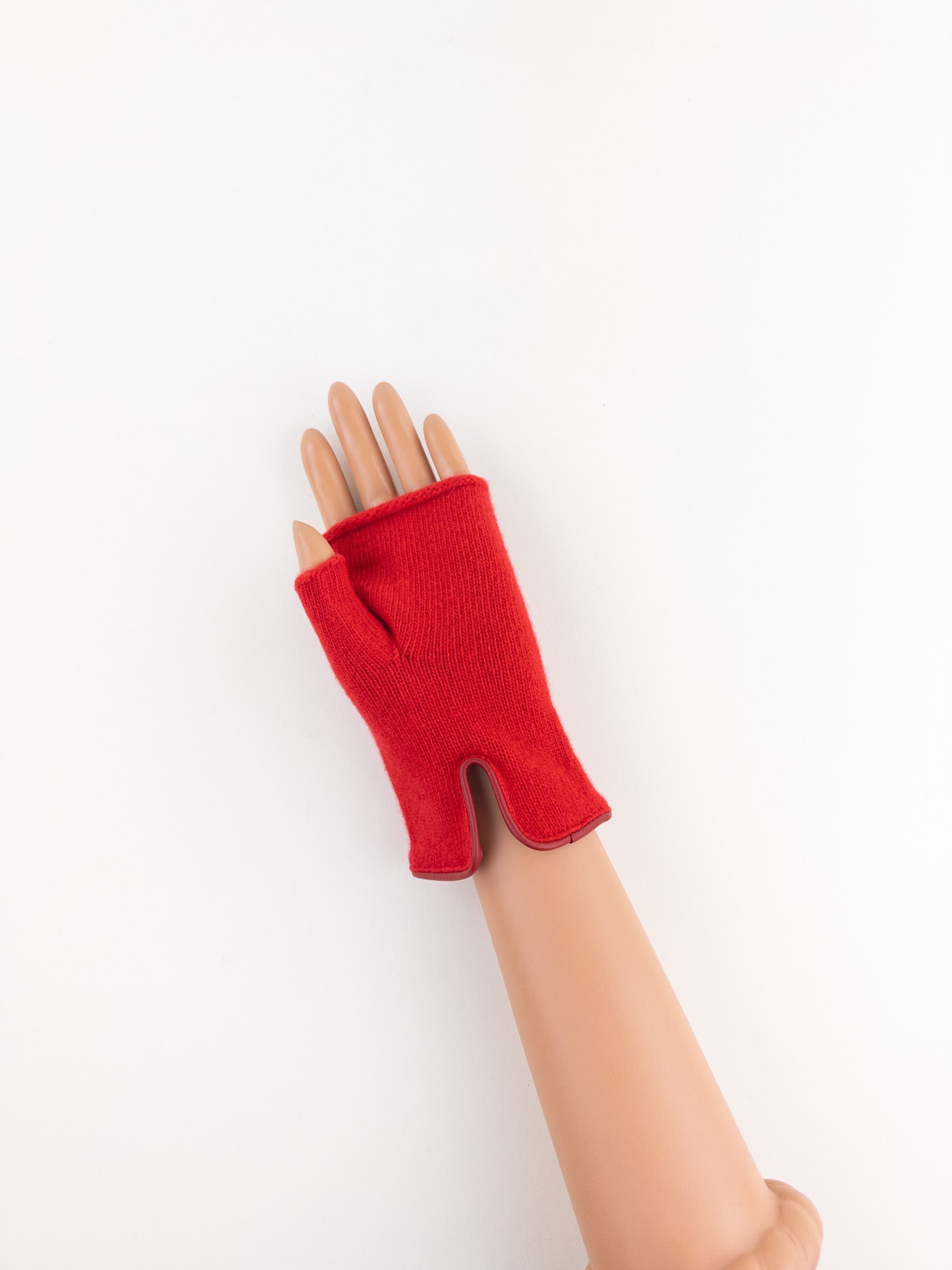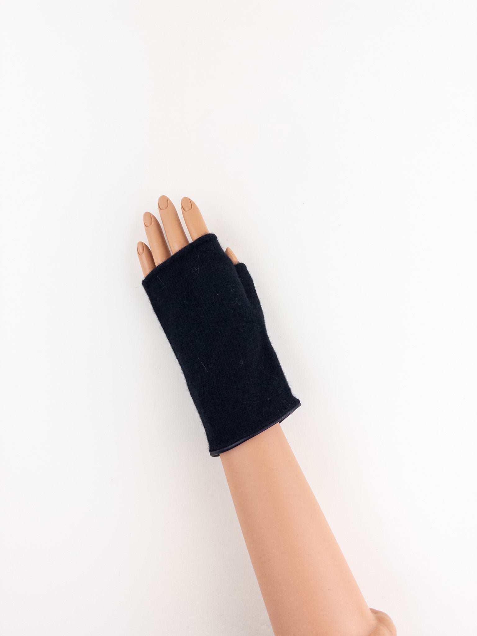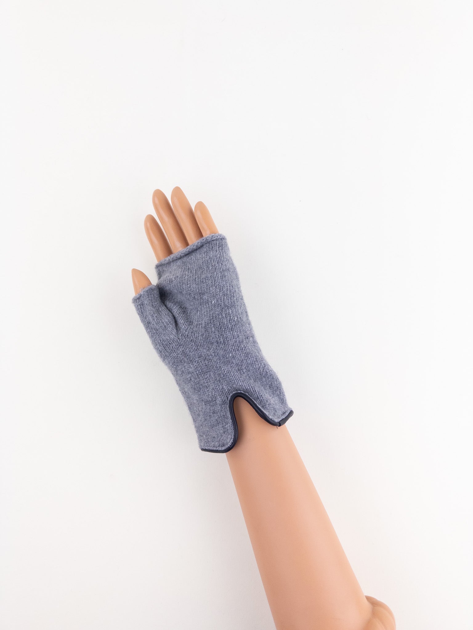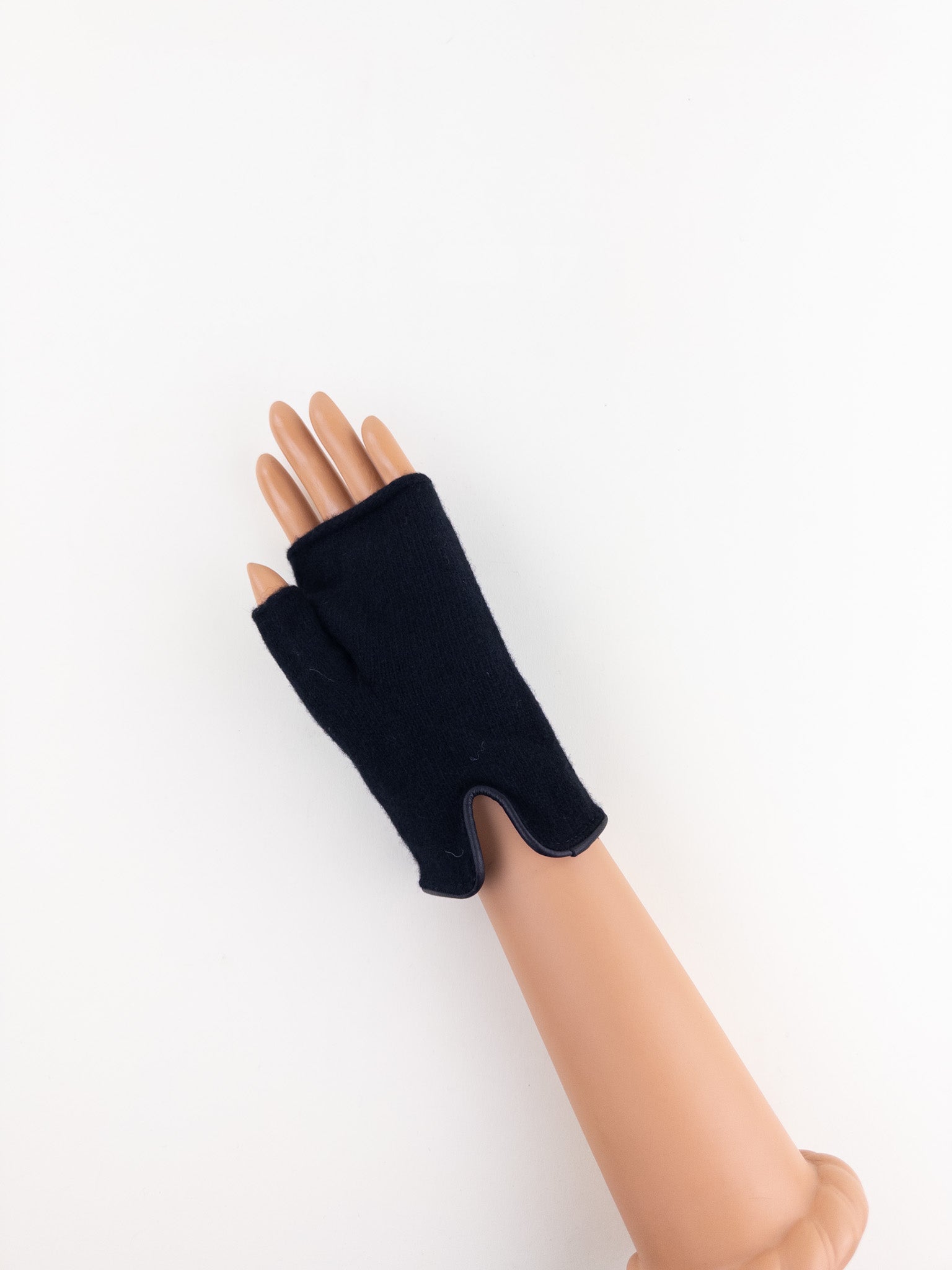 Merino and Cashmere Fingerless Glove with Leather Trim
