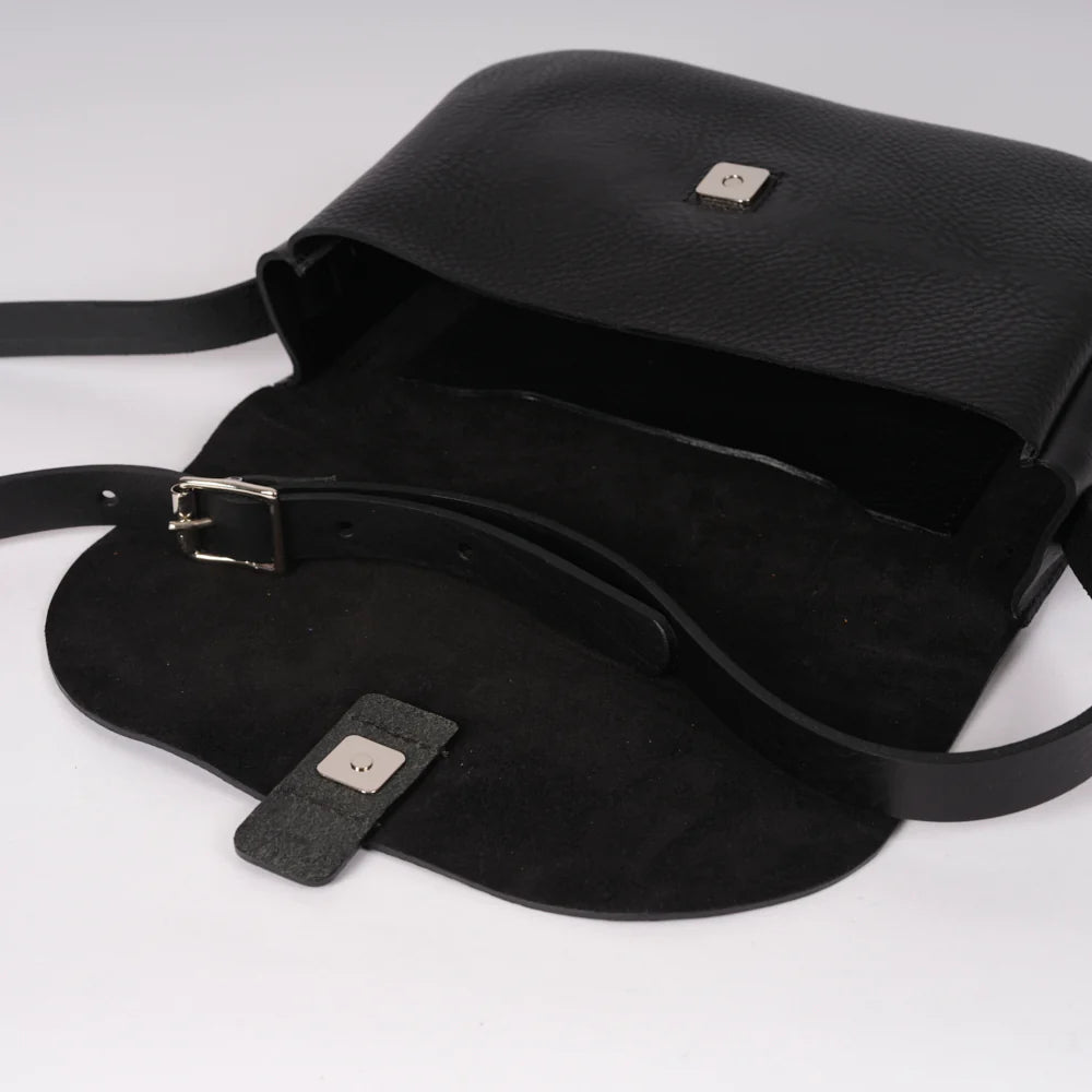 The Orbed Tab Bag is based on the Orbed Pop Bag, but with our beloved tab fastening instead of pop fasteners, giving it a cleaner look for a practical day to day classic. Made from beautiful tumbled vegetable tanned leather, this is a simple pared back design featuring a rounded shape, tab leather with hidden magnets, and an adjustable buckle leather strap to be worn over the shoulder or cross-body.