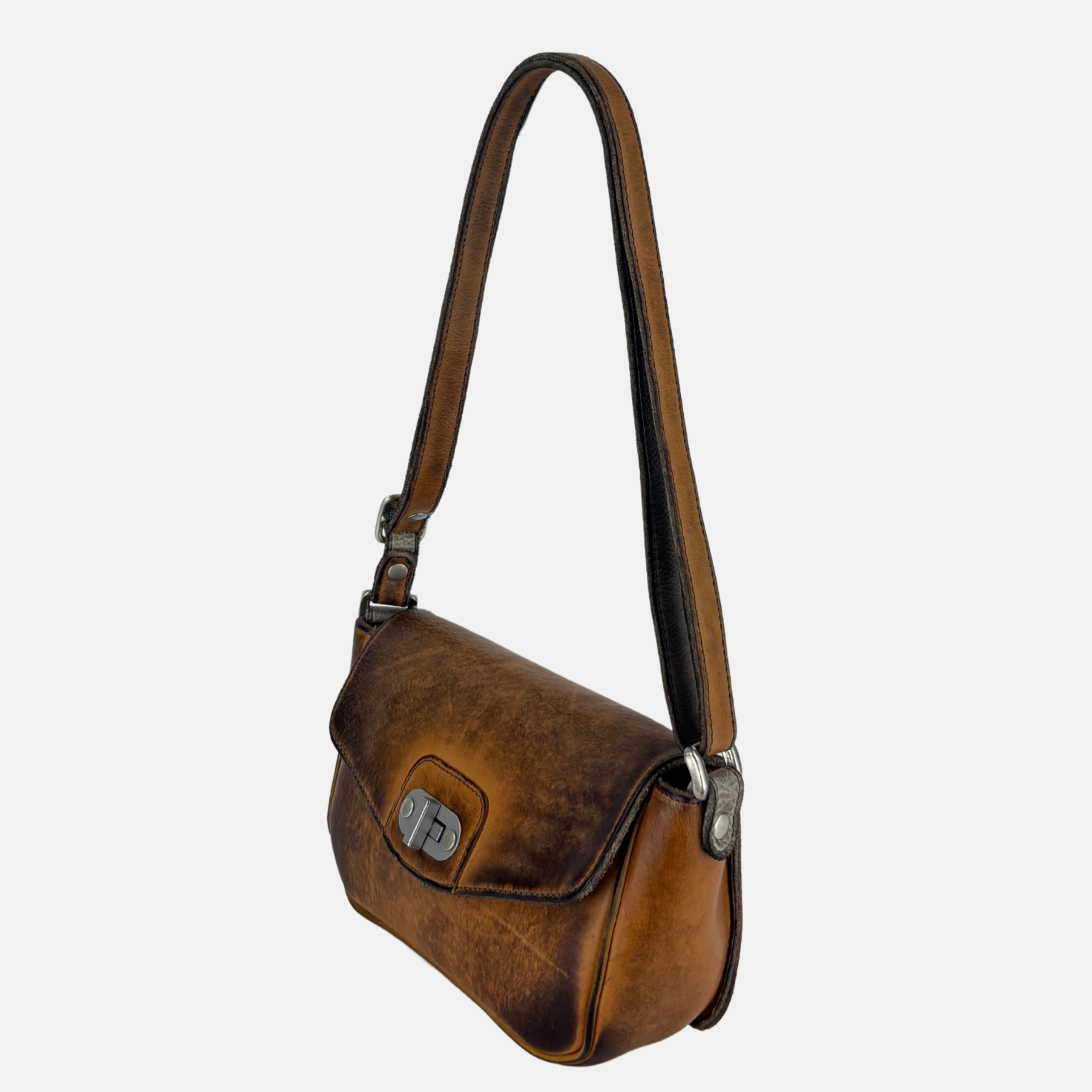 Vegetable-dyed leather washed for lasting vintage effect. Made in very limited edition. Due to the specific dying process, each bag has a unique finish and can be considered one of a kind. Made in Italy
