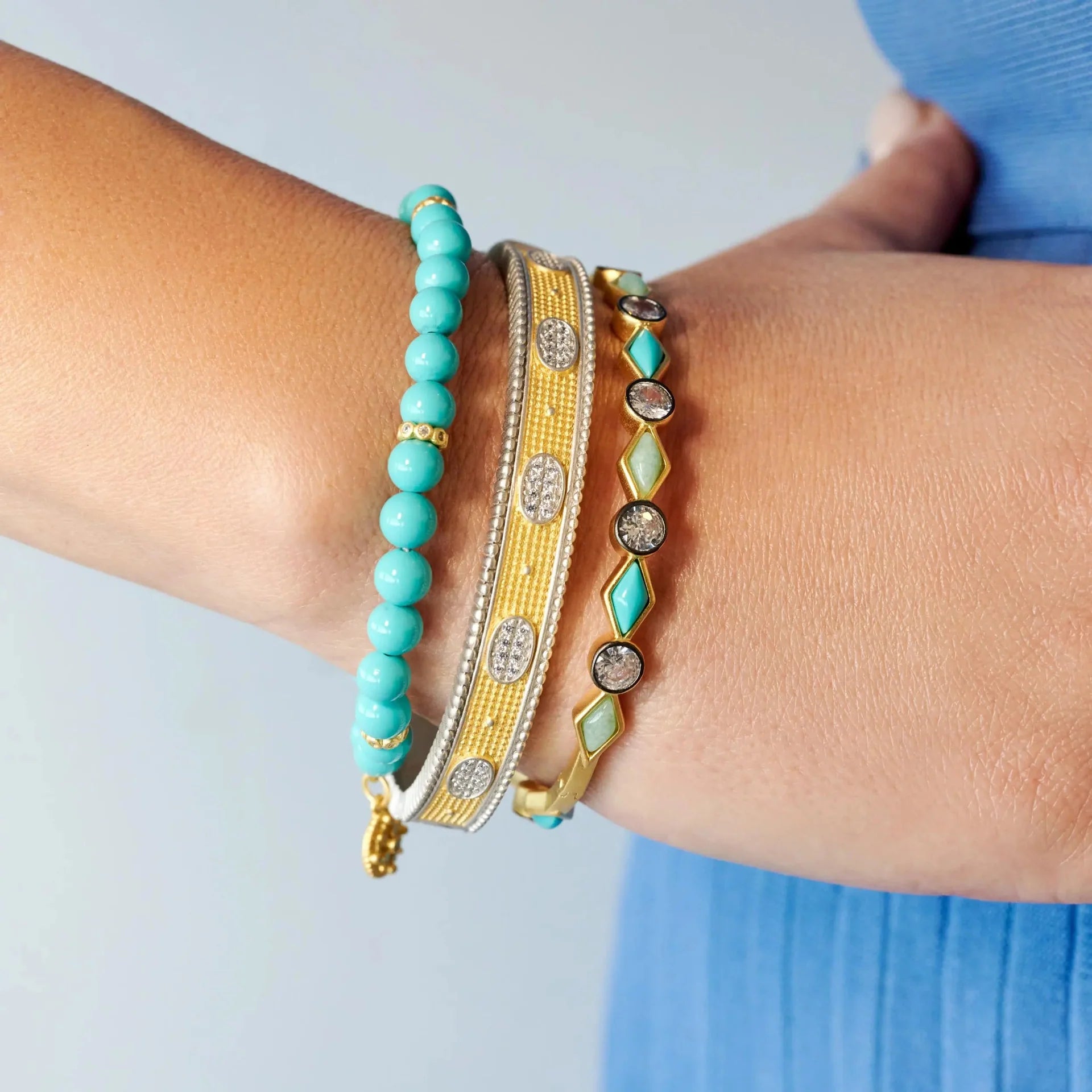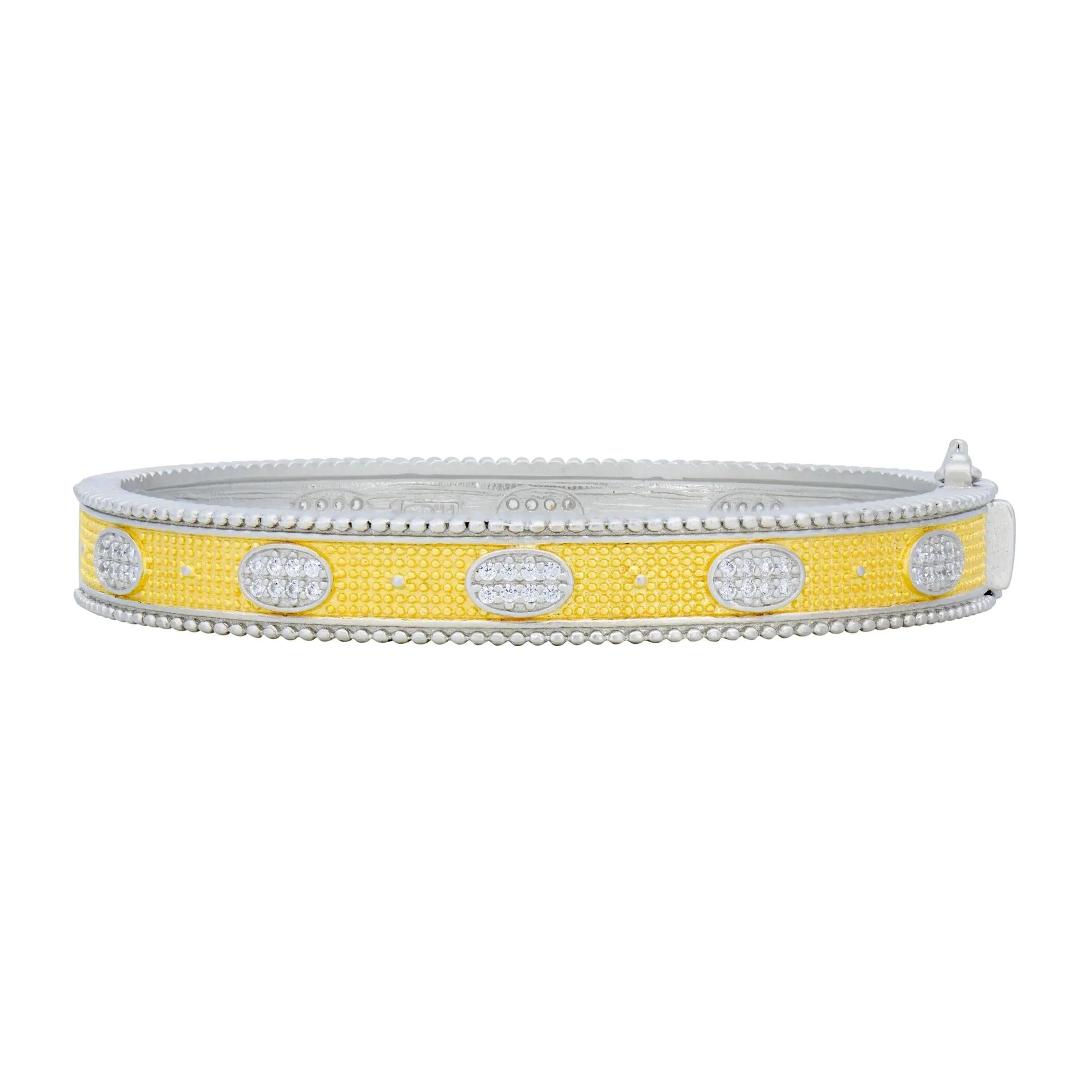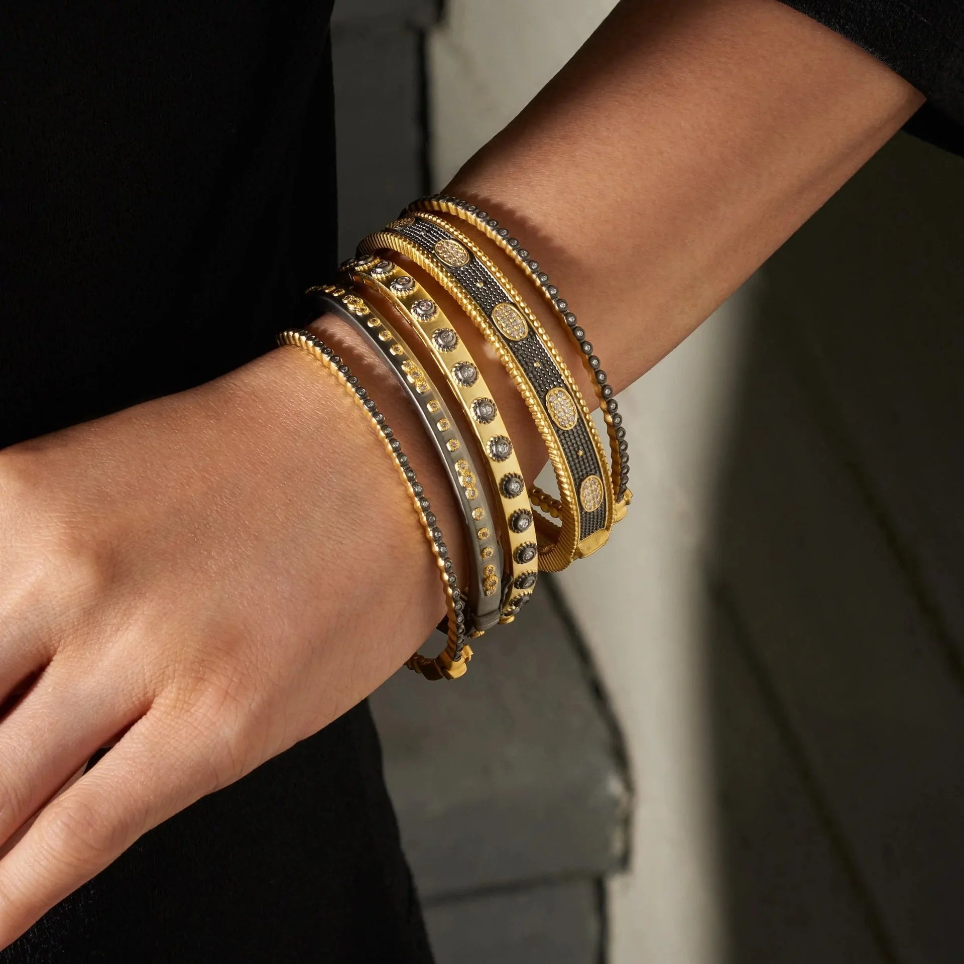 Inspired by the architecture and industrial setting of Brooklyn, the Signature Oval Eternity Hinged Bangle makes a statement. Let it stand out in a stack or alone for a simple, modern look. Pave ovals embellish this modern style for ornate flair.