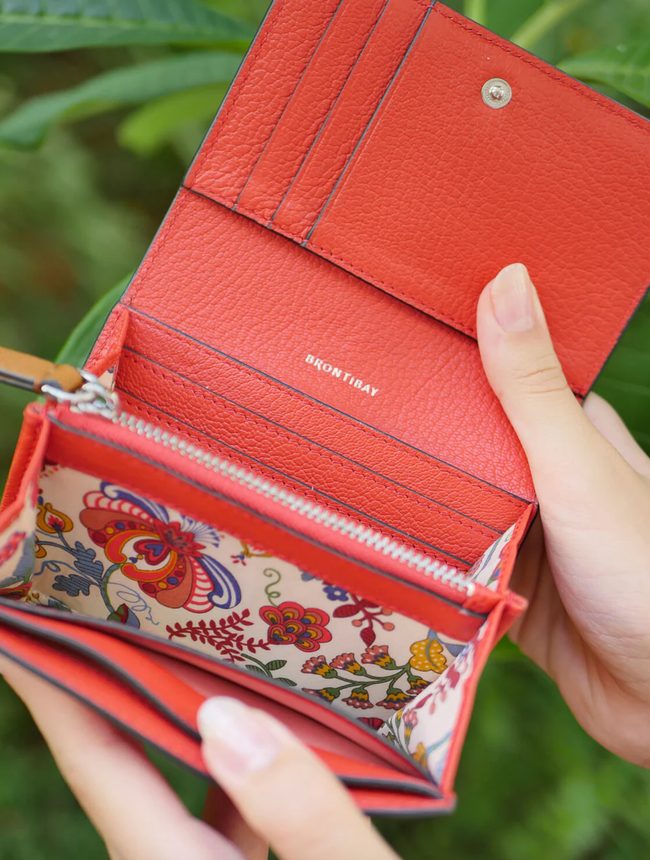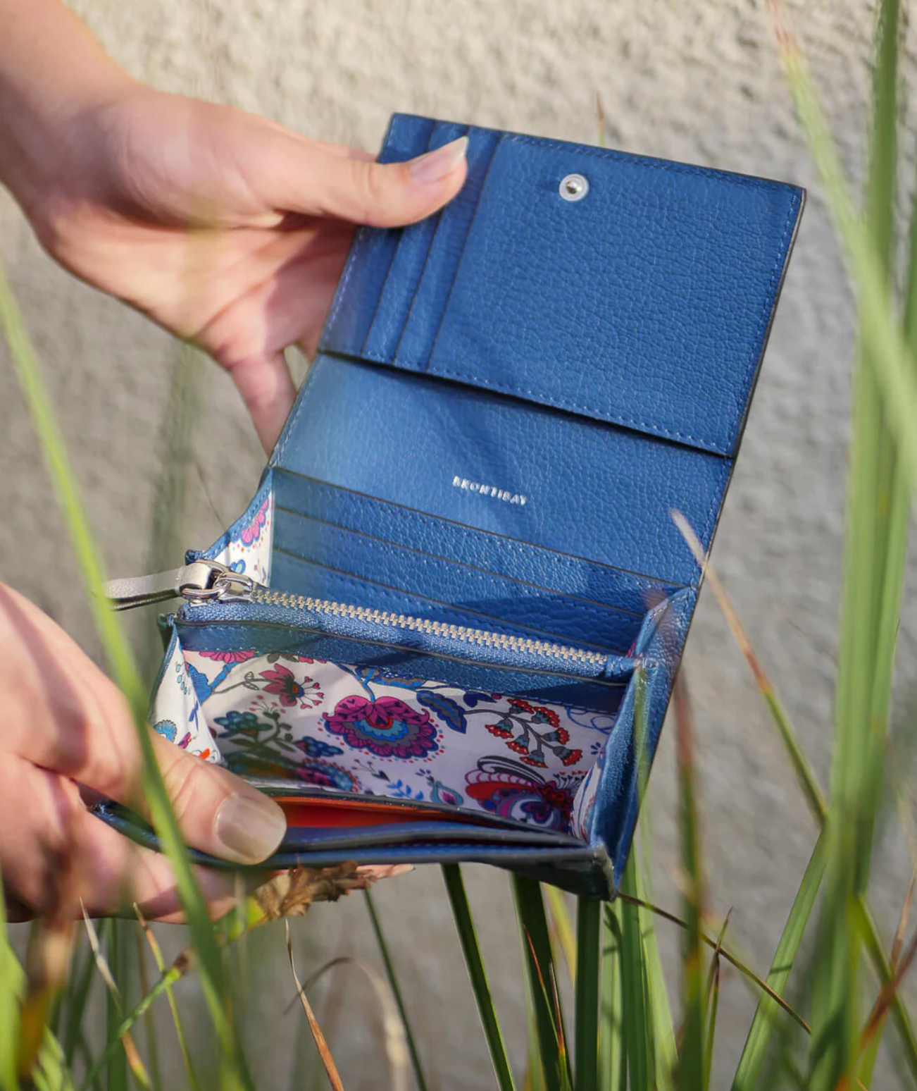 Rayen, ultra-compact envelope wallet in full grain natural grained leather. Very functional, it contains 2 compartments, a zipped pocket and 4 notches for credit cards, 3 pockets, one of which is a European ID card pocket. Lined in Liberty printed cotton fabric, Anja will be your daily accomplice and guardian of your secrets. For a small format, see Katie card holder.
