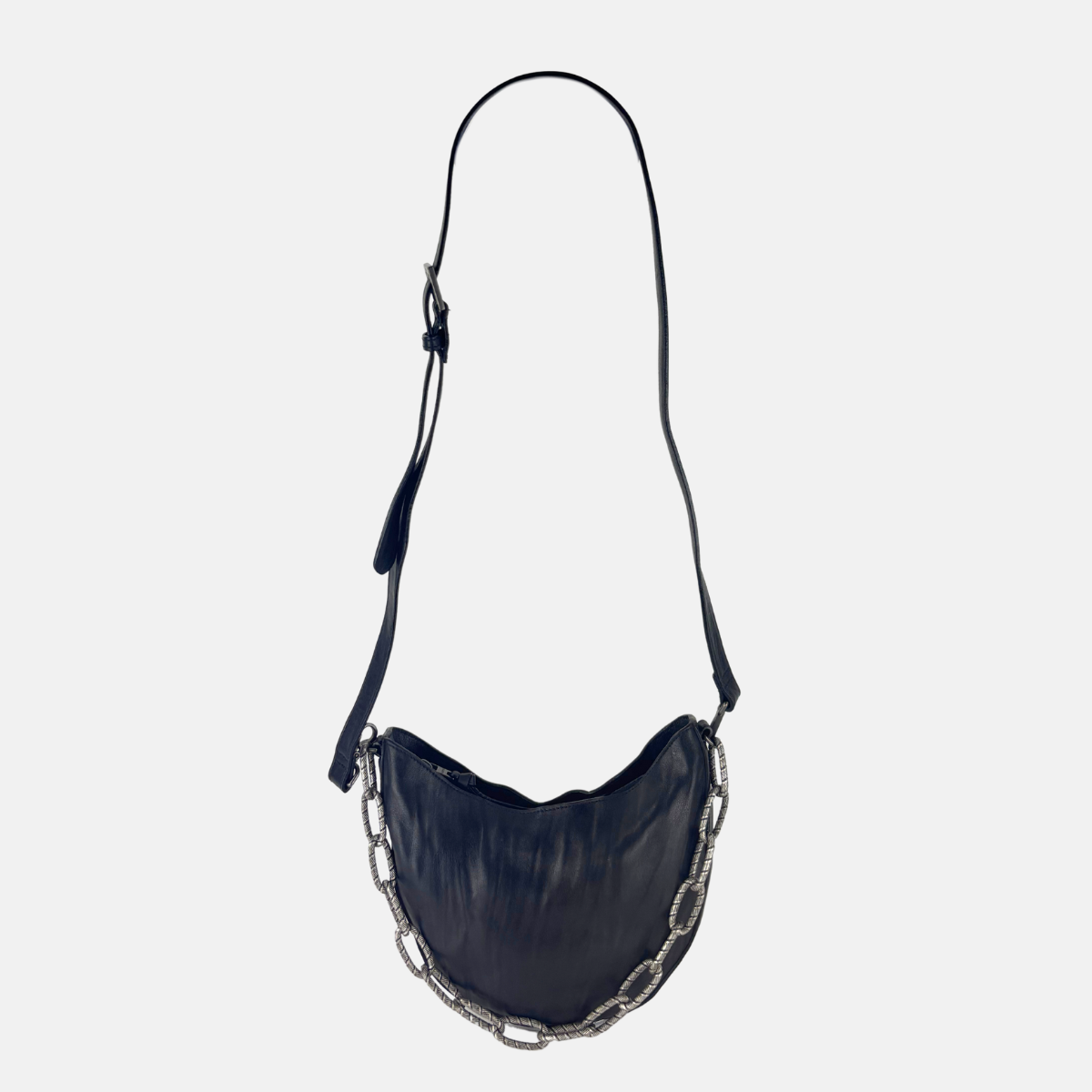 Rehard Small Moon Crossbody Bag with Gunmetal Chain Strap in Black