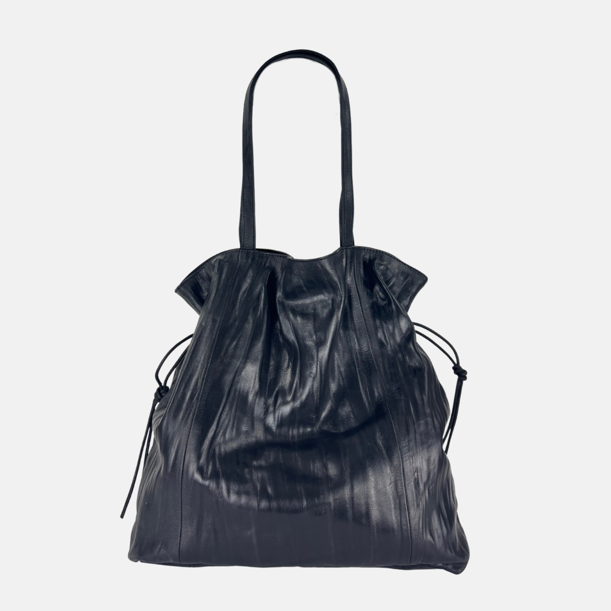 Large, light, and spacious tote. Magnet snap closure with drawstrings provide easy accessibility without compromising security.