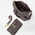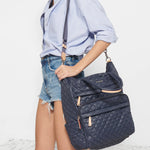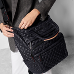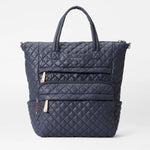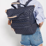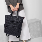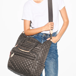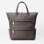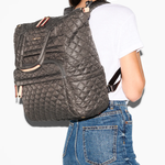 Our new Metro Utility Backpack is lightweight, durable and easy to clean. Made from our signature REC nylon, this packed-with-pockets (18 of them) multitasker lets you easily sort, stash, and find your goods. Including a 15" laptop sleeve, a travel sleeve, a new larger size and clips that fasten to your stroller — it's fully tricked out.