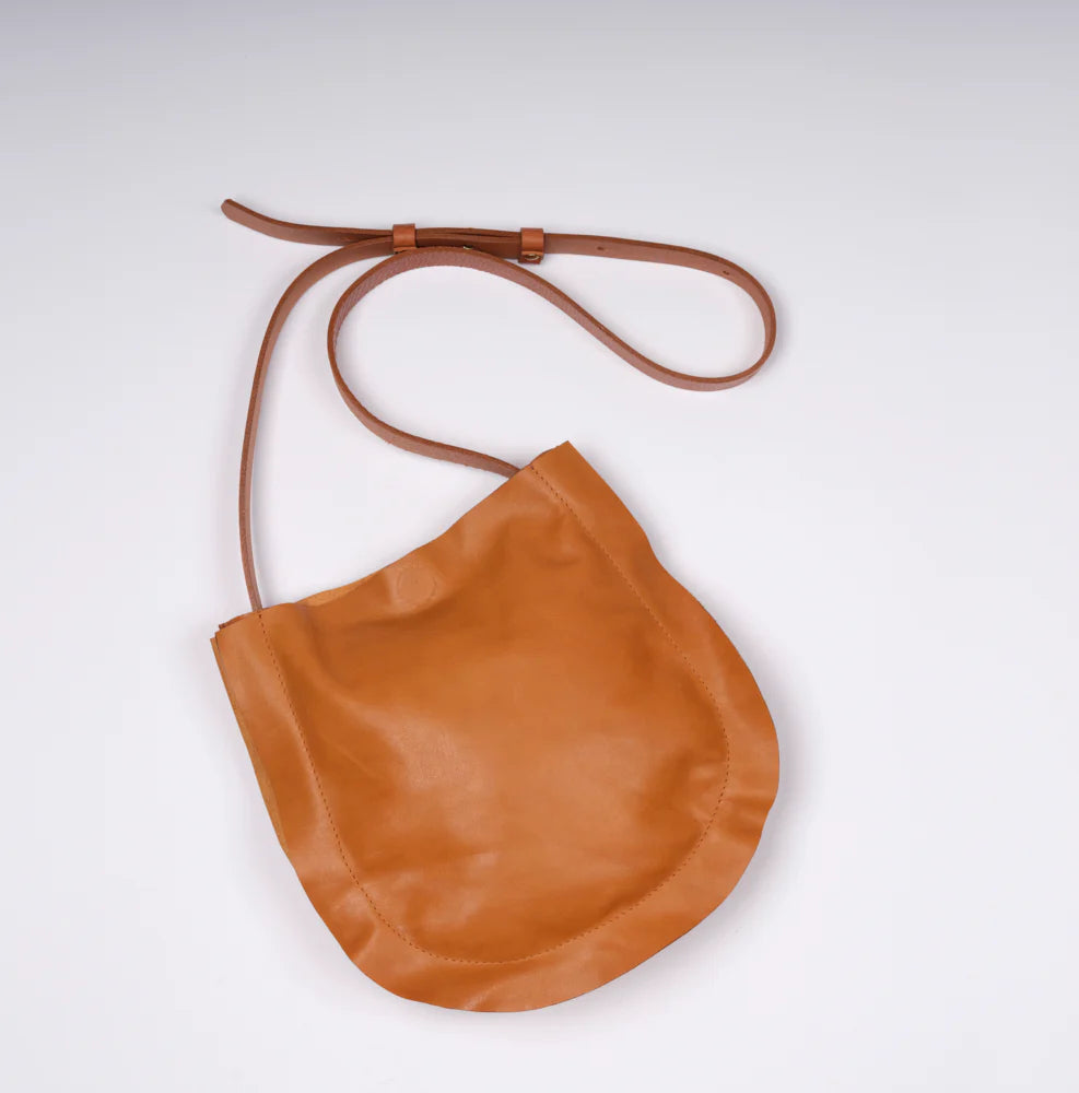 The Tortellini bag is made in England using a lightweight Italian vegetable tanned leather. This unique bag was inspired by our Ravioli tote range with its raw edge frill construction. The adjustable vegetable tanned leather strap is encased in a suede channel around the entire gusset of the bag. Fastened with a discreet hidden magnet.