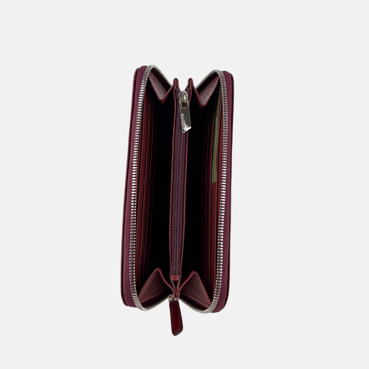 Biagini Hand Painted Supersmooth Calfskin Long Zip Around Clutch Wallet in Wine