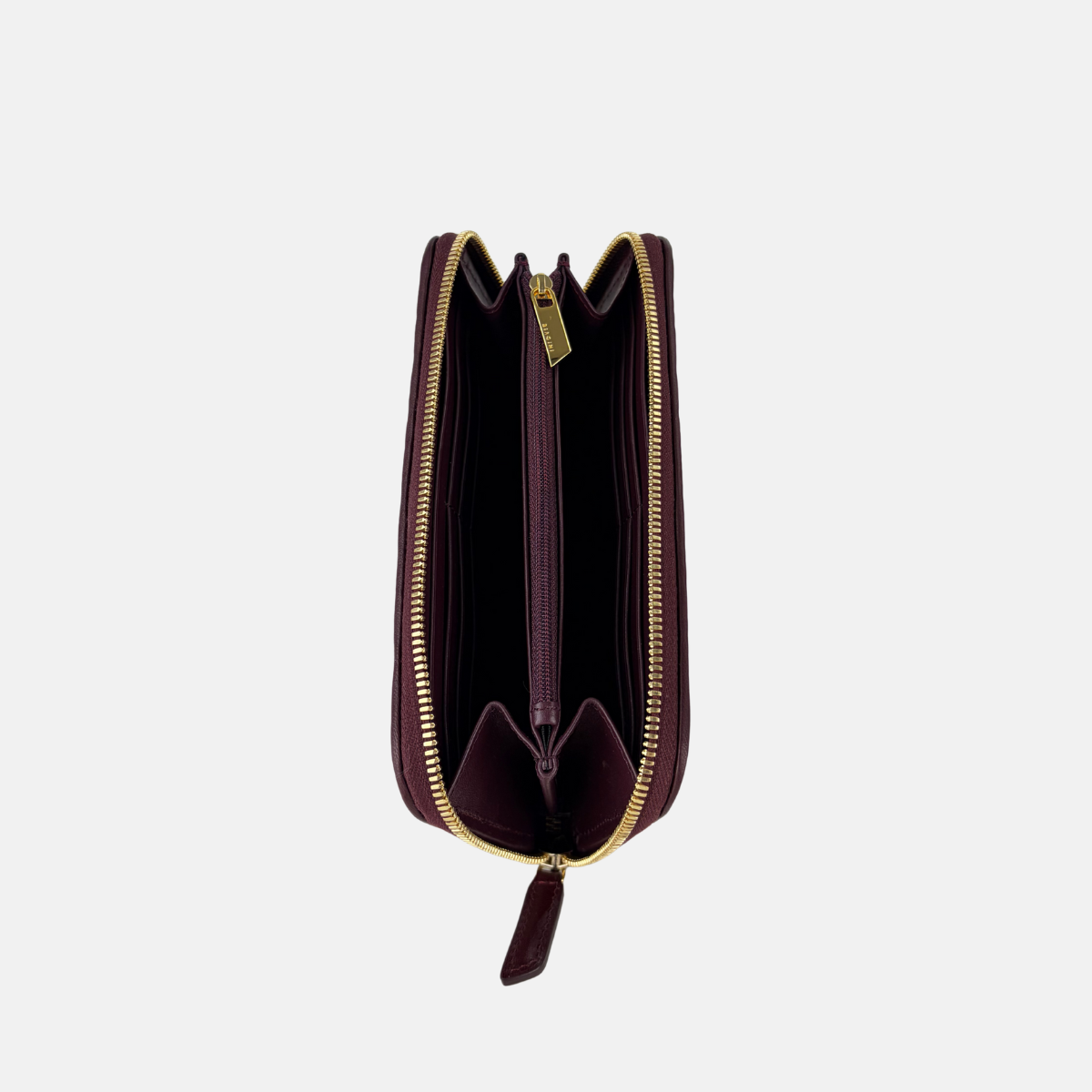 Pleated Nappa Long Zip Around Clutch Wallet in Wine