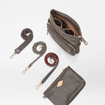 The Downtown Crosby is a crossbody style that transitions seamlessly from day to night. With four exterior zip pockets and three strap options, there are several ways to style and carry the bag whether running errands or heading out for drinks and dinner. The Downtown Crosby is made from our signature Black Quilted Oxford Nylon with black leather trim, silver hardware, and red edge dye.