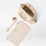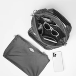 - Detachable, adjustable nylon crossbody strap