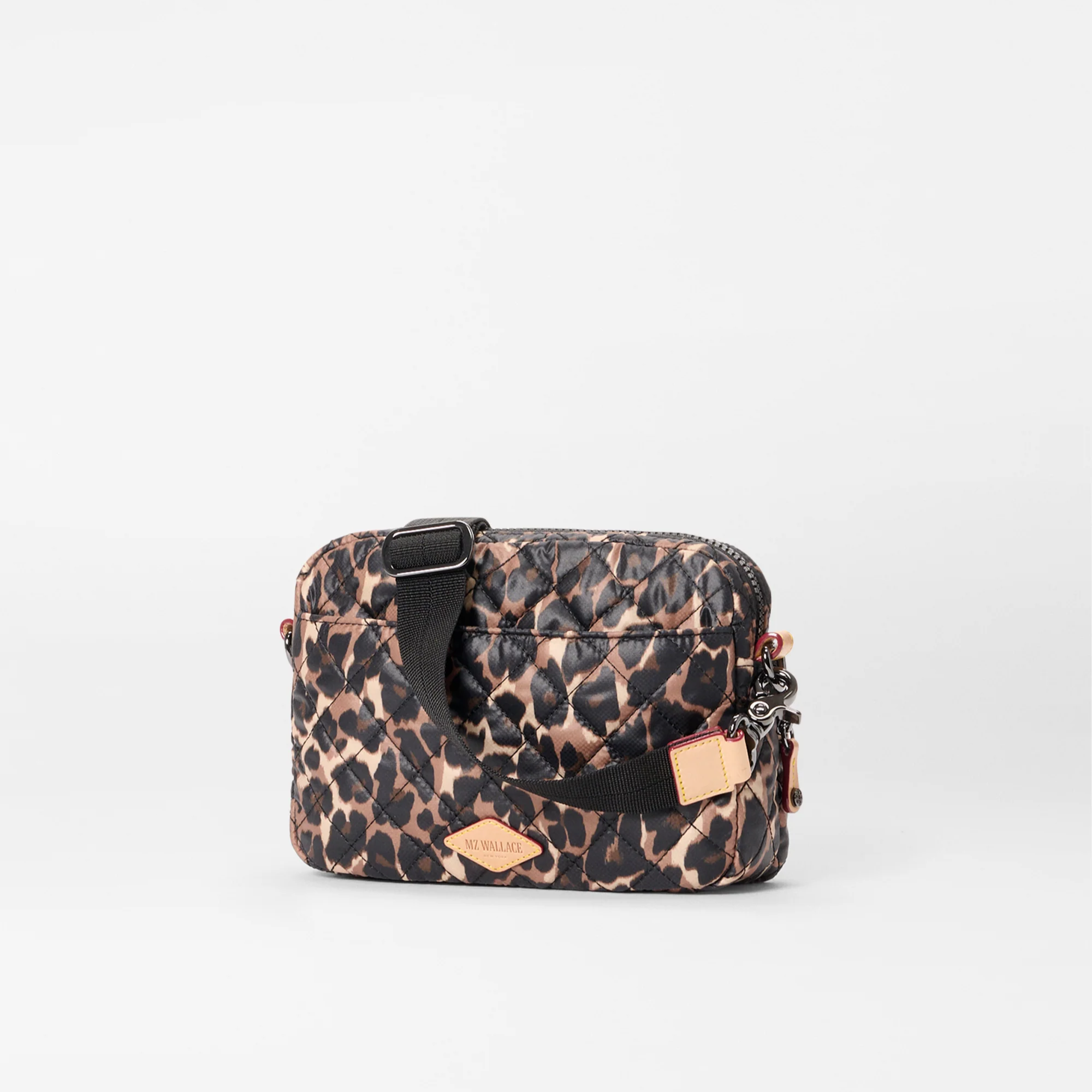- Detachable, adjustable nylon crossbody strap