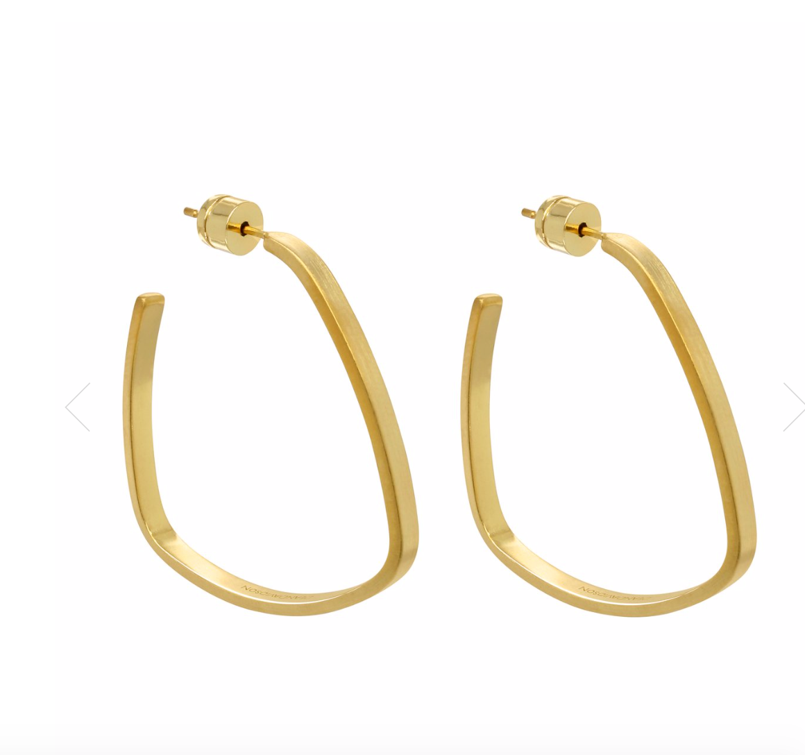 Leaving traditional design behind, this modern architecturally-inspired square-shaped hoop hangs from a post back. The slim, lightweight structure makes wearing this style as effortless as it is unique.