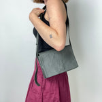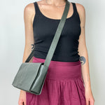 Adjustable shoulder belt strap, magnet closure on flap, outside slip pocket fits large cell phones, interior small zip pocket