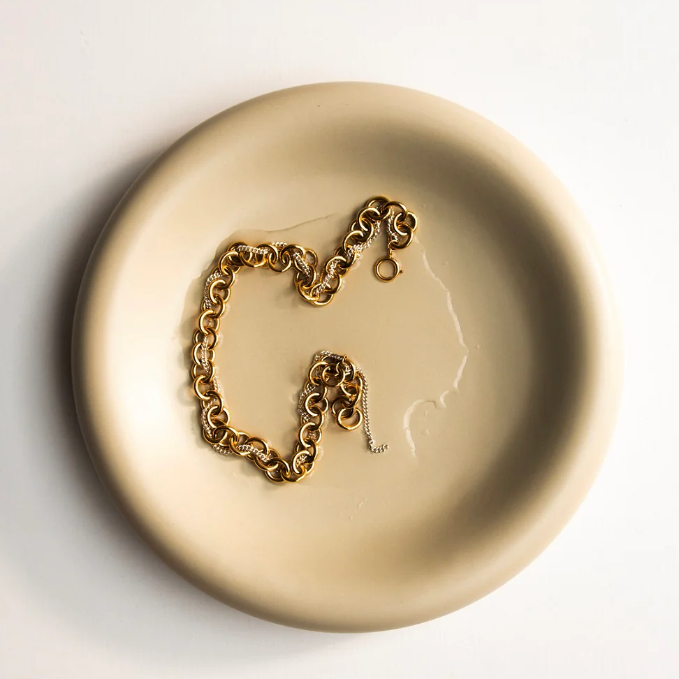 24k fine gold plated brass with fine silver chain woven through. Nickel free.