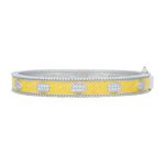 Inspired by the architecture and industrial setting of Brooklyn, the Signature Oval Eternity Hinged Bangle makes a statement. Let it stand out in a stack or alone for a simple, modern look. Pave ovals embellish this modern style for ornate flair.