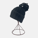 Grevi Sequin Pom Pom Ribbed Knit Beanie