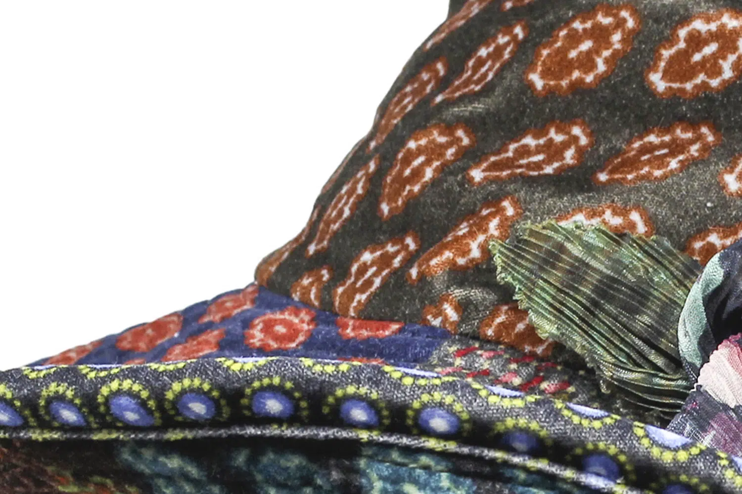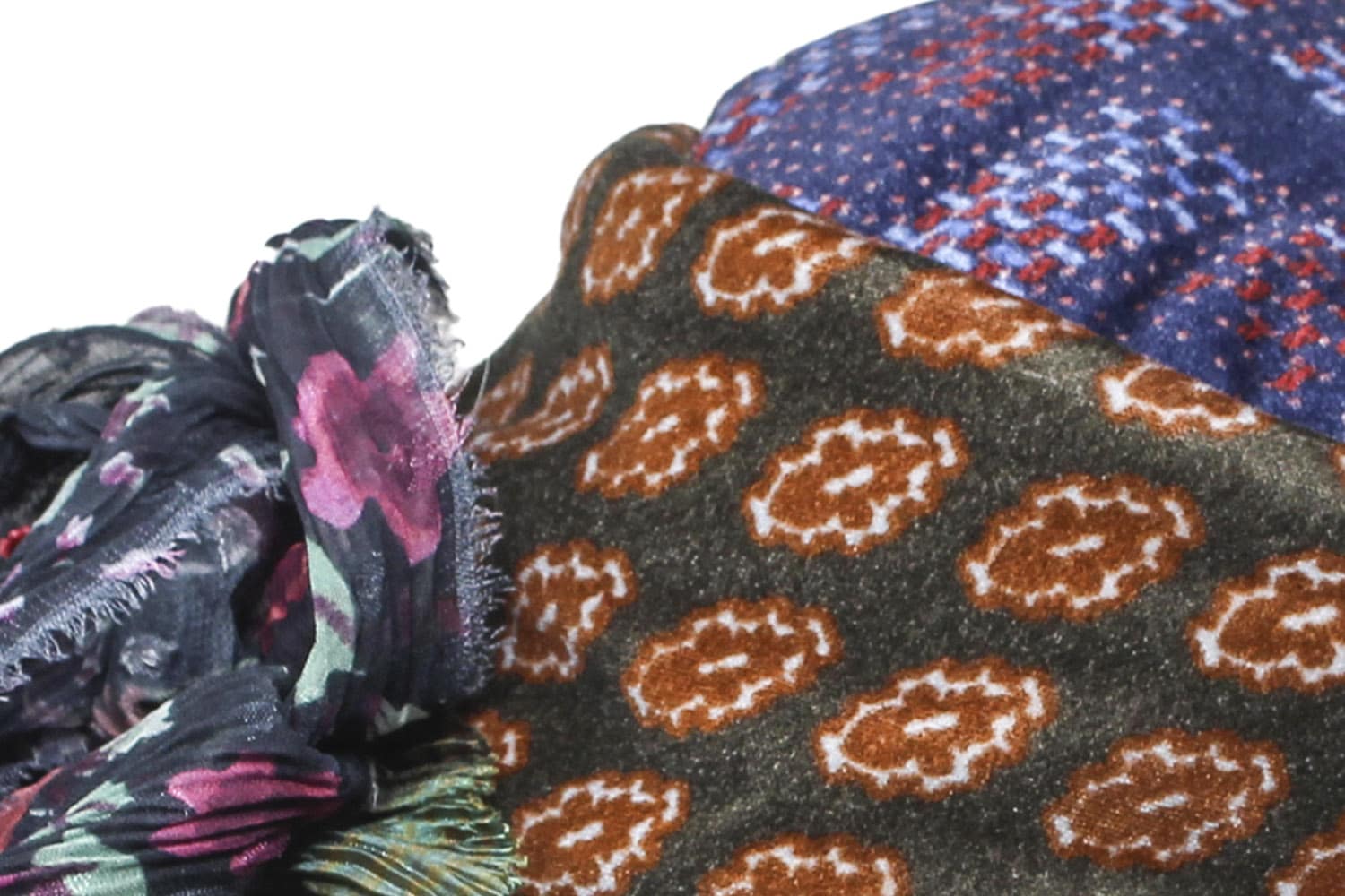 Beautiful, colorful hat with an easy to wear neutral base, 100% cotton velvet