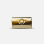 Expertly designed, this structured clutch features a glamorous crystal clasp and magnetic closure for added security. Elevate your evening ensemble with this stylish and functional accessory.