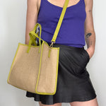 Elevate your style with our Natural Shopper, made with eco-friendly natural fibres and accented with luxurious leather trim. The spacious main compartment has a magnetic clasp closure, while the inner leopard print pouch offers versatile organization options. Use the short handles or crossbody strap for added convenience.