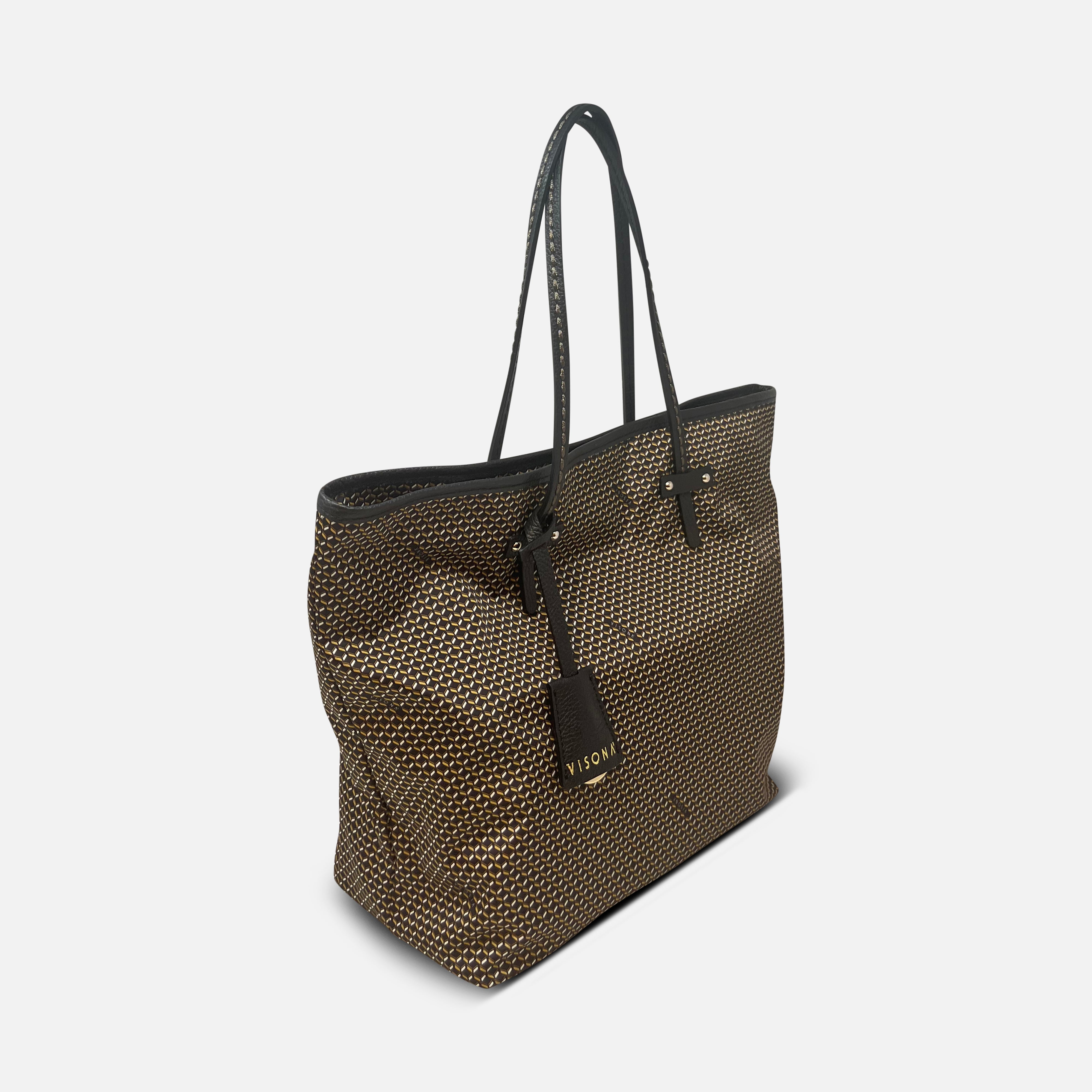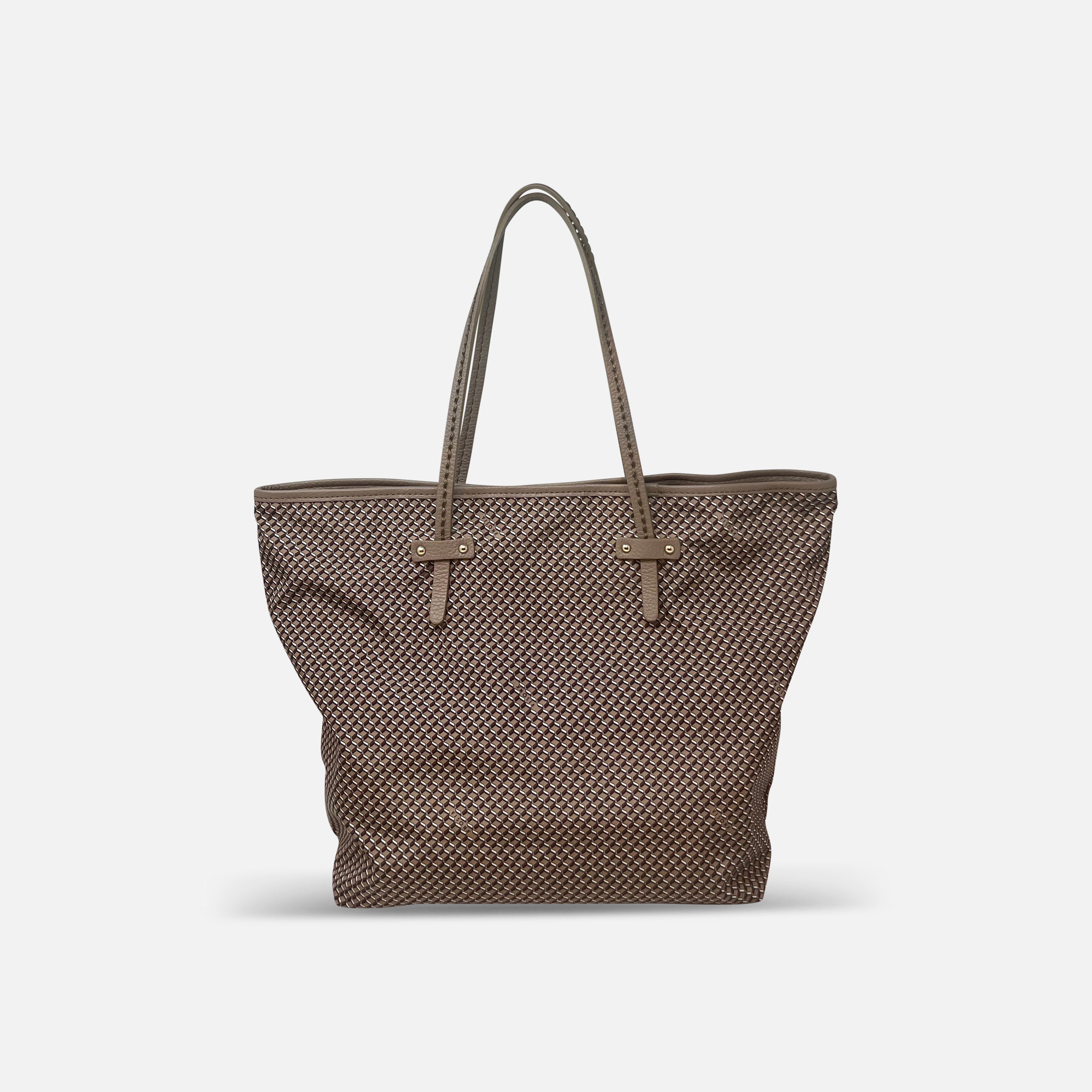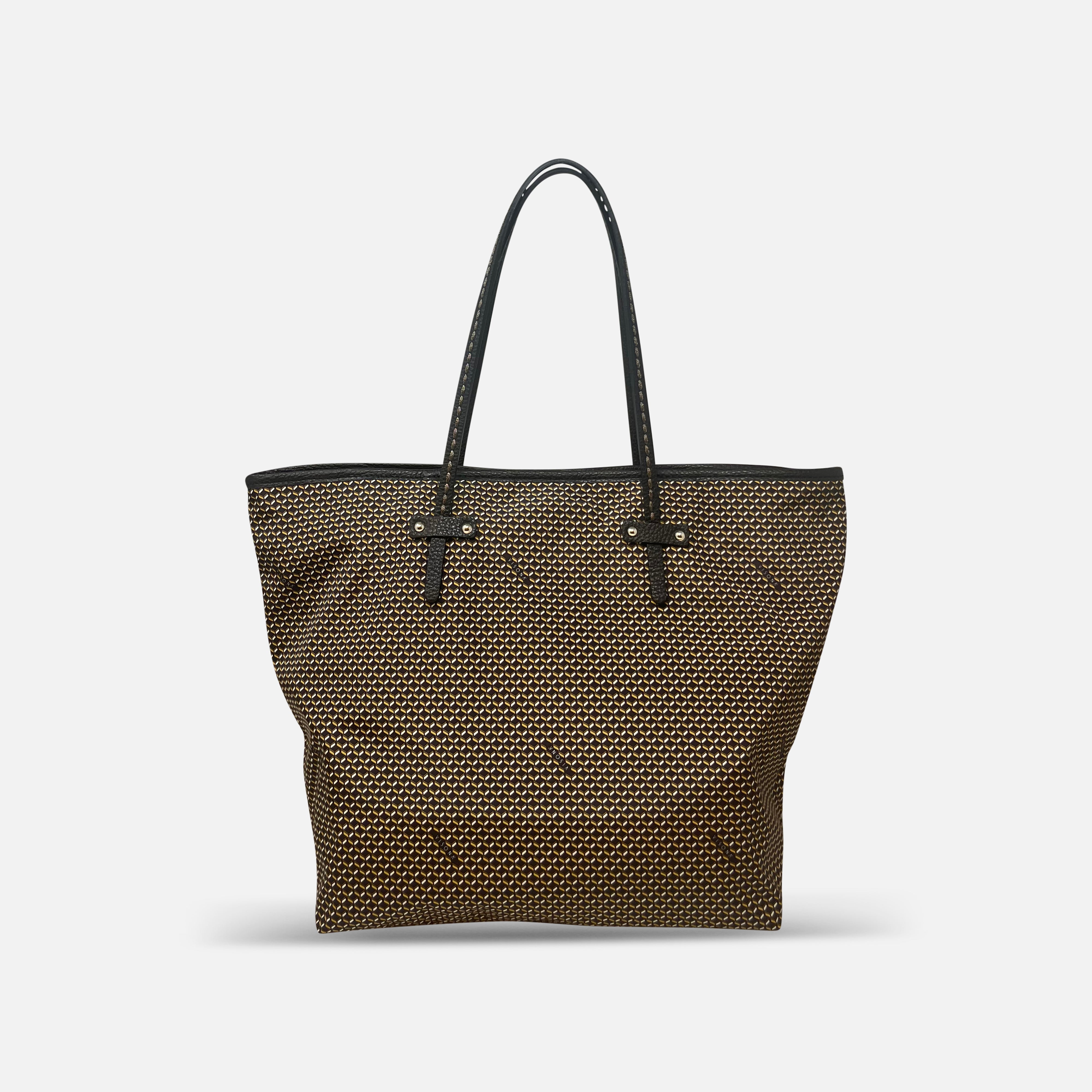 A large size tote with magnet snap top in the uniquely lightweight and resistant exclusive PLINIO fabric with full Italian leather trim for durability and elegance.