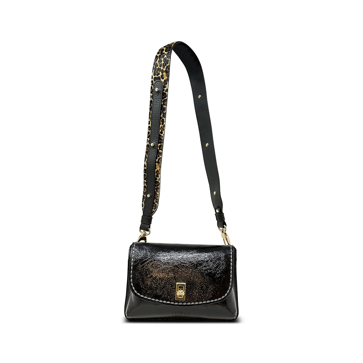 - 1 removable adjustable Leopard printed-pony hair and black leather 1" wide guitar strap