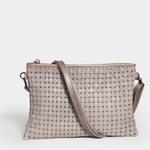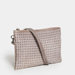 Beautiful Laser Cut rounded squares lighten the texture and weight of a super soft calf skin leather. Great as a small day to night bag for your essentials, cellphone, keys, glasses, cosmetics.