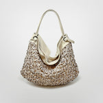 Beautiful Laser Cut geometric flower shapes lighten the texture and weight of a super soft calf skin leather.