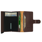 The patented mechanism allows you to slide out your cards with one simple motion, ready for immediate use. The aluminium protects from bending, breaking and unwanted wireless communication. Miniwallet Original is corrected-grain leather, made in Holland and Italy from European cowhide.