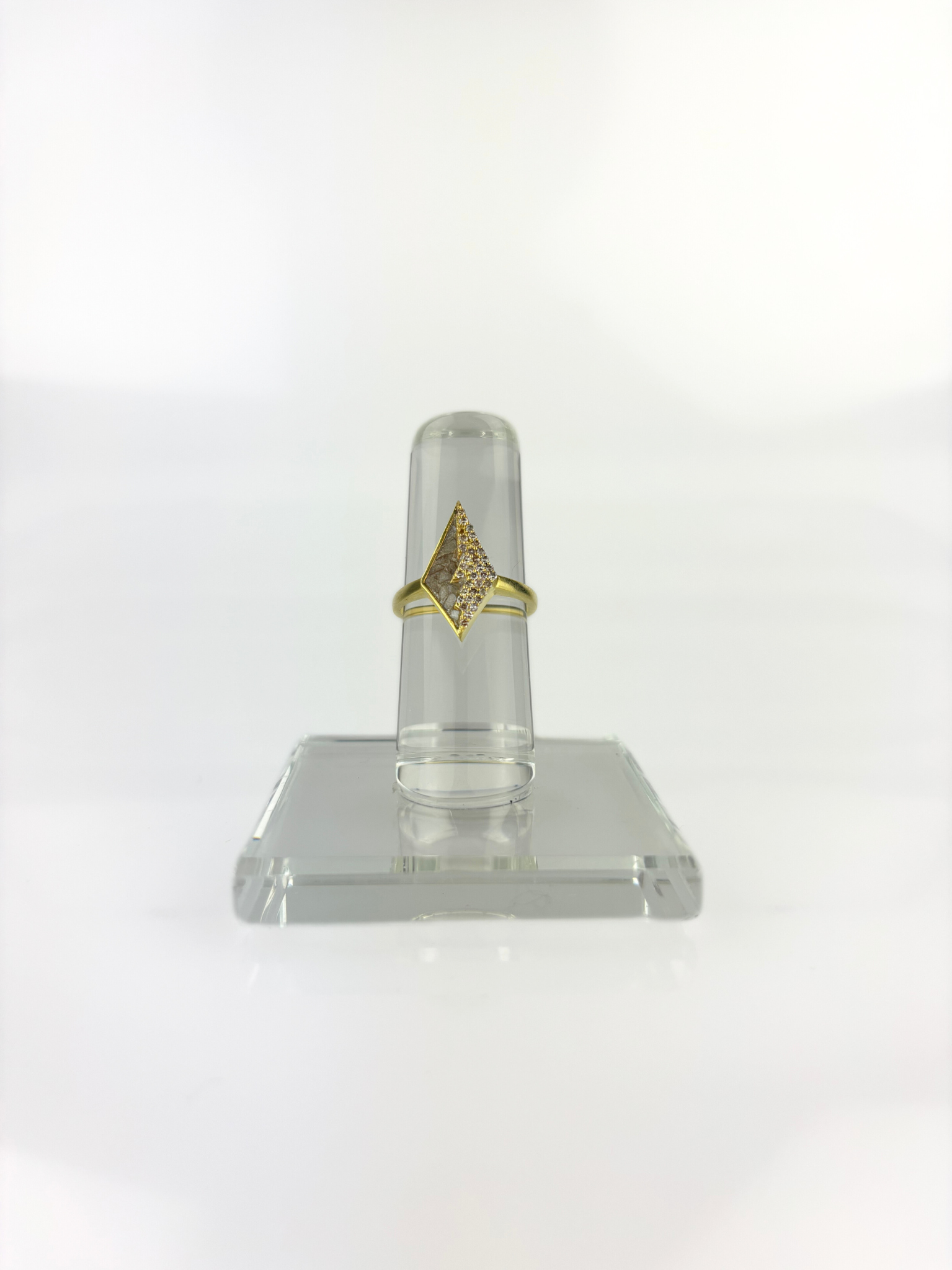 Sliced raw uncut champagne diamonds, White resin, Pink Tourmaline, Vermeil 18k gold