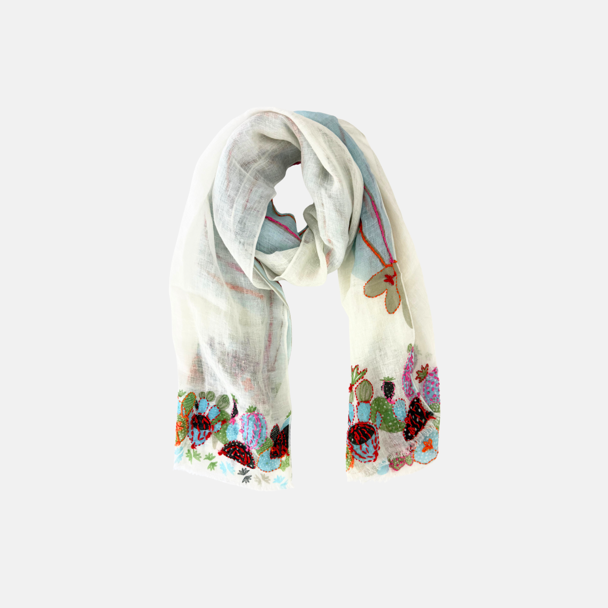 This product has been designed following traditional Indian dyeing and printing methods. Variations in color and print are not defects, but rather elements that add to the natural beauty and uniqueness of each scarf.
