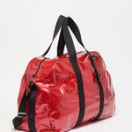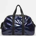 This incredibly light, extra large weekend bag folds completely flat for storage or is a convenient carry-on luggage piece. Zipper closure, attached shoulder strap