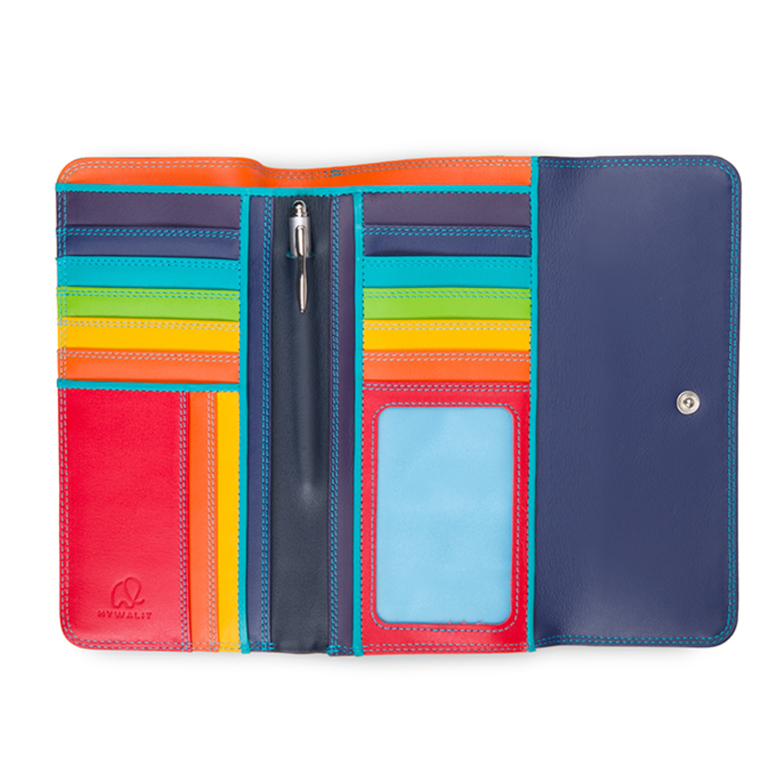 Stay in control of your cash and cards with our spacious Tr-fold Zip Wallet! A full-length zip pocket is divided into four sections so you can organise your coins. Inside the main section you'll find an array of card slots, two note sections and a transparent window for an ID card or photo. A stylish silver mywalit pen adds the finishing touch!